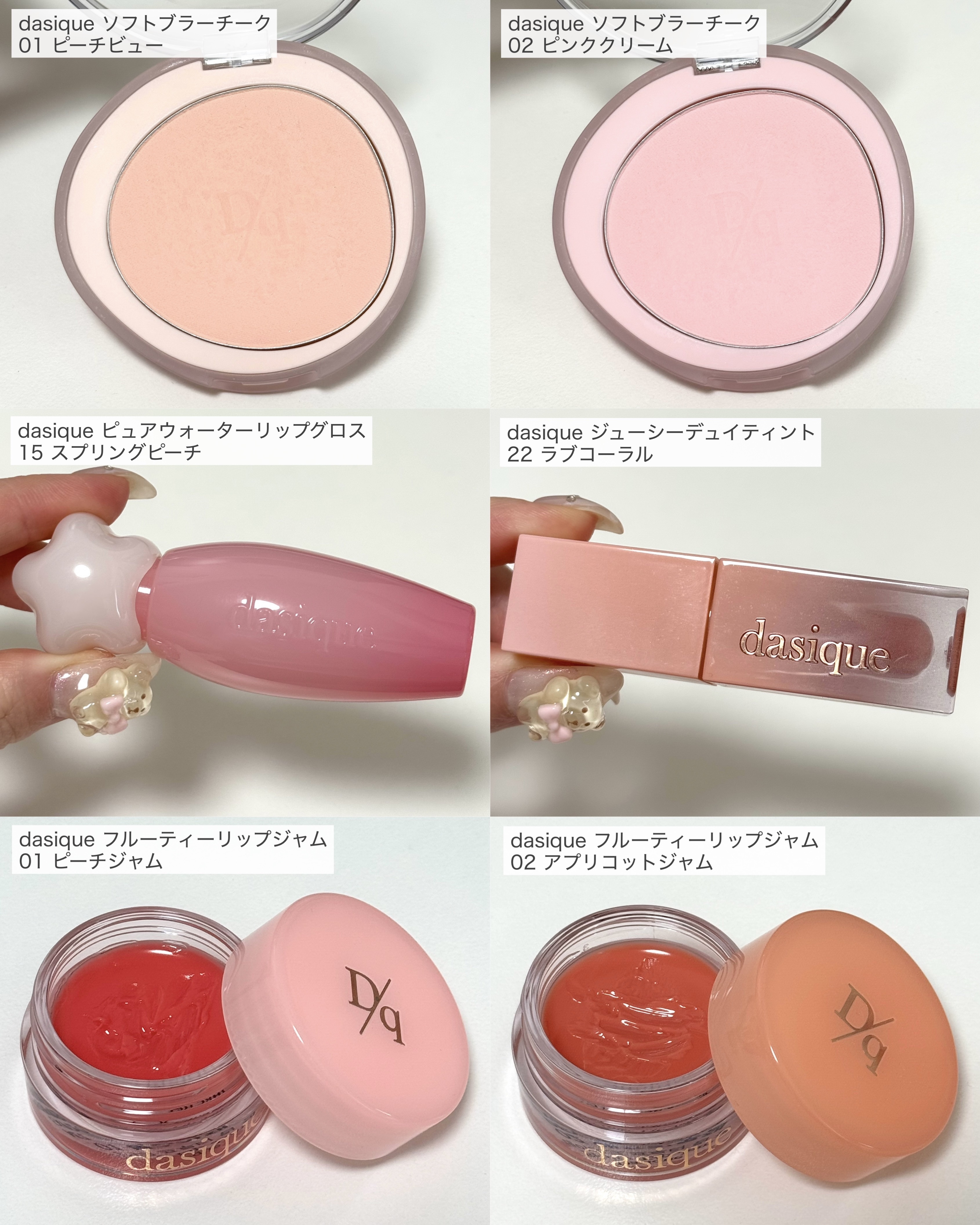 こんにちは。こんばんは。今回はdasiqueのソフトブラーチークをレビューしたいと思います!【使った商品】dasiqueソフトブラーチーク01ピーチビュー【使ってみて】柔らかい粉質です!頬につけても粉っぽさが出なかったです!01ピーチビューは...