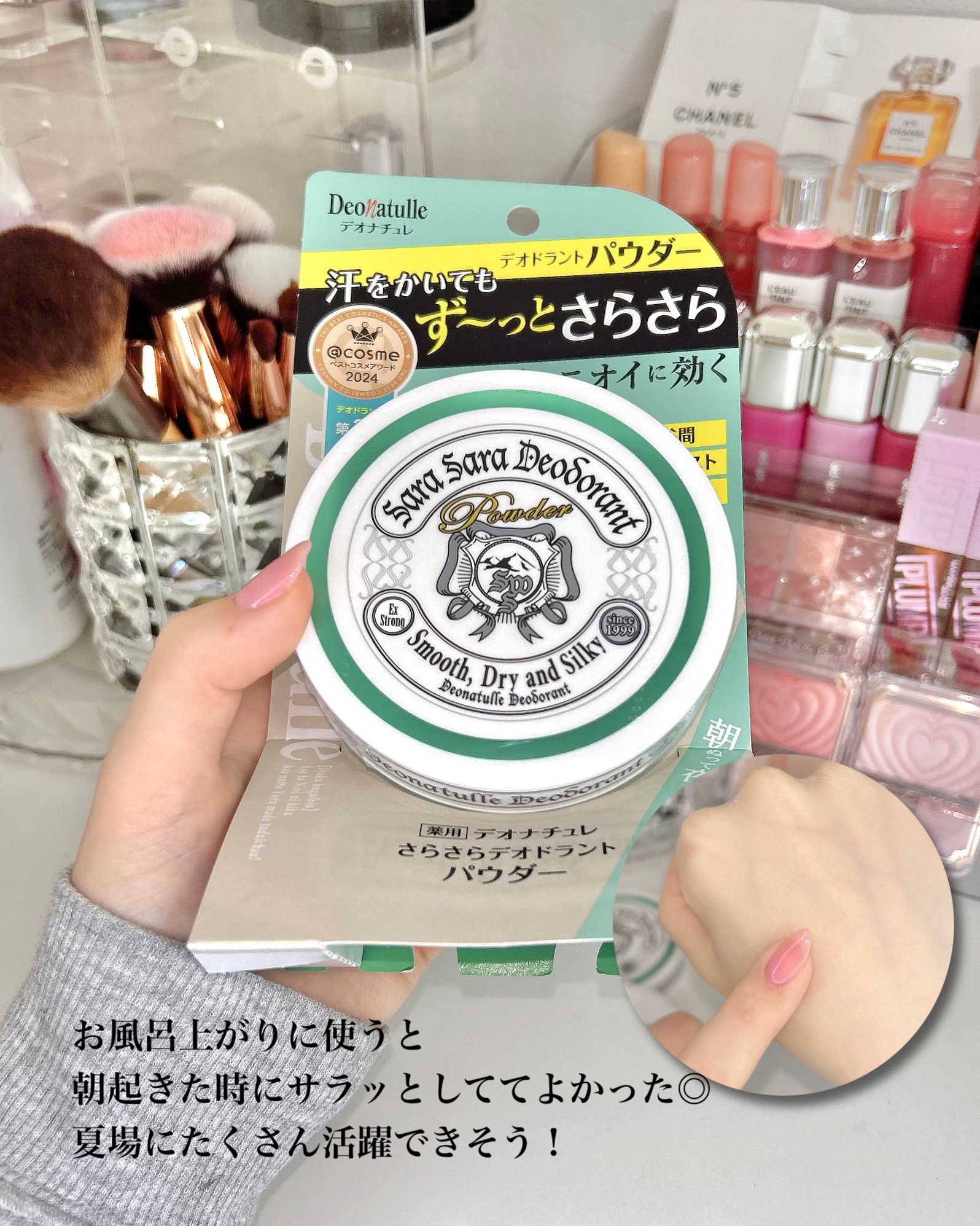 \デオナチュレ薬用さらさらデオドラントパウダー/アットコスメなどのベスコス受賞のデオナチュレのデオドラントパウダーをお試ししてみたよ。パウダータイプの制汗デオドラントで、皮脂吸着パウダーが汗や皮脂を吸収して長時間ベタつかず、サラサラをお肌をキ...
