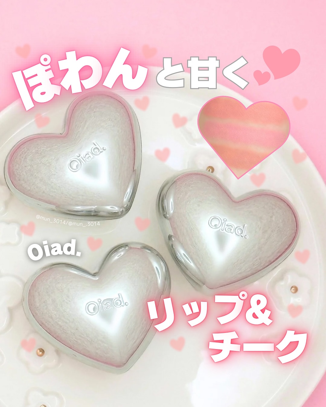 #PROiad.☑︎シルバーパースムースクリームリップ&チーク\ふわっと高発色/RedVelvetのスルギが広告モデルのオアドの人気商品✨ハート型の可愛いパケで雲のように軽いパウダリーな質感🤍ぼかしやすいからふわっと血色感のある頬にしてくれま...