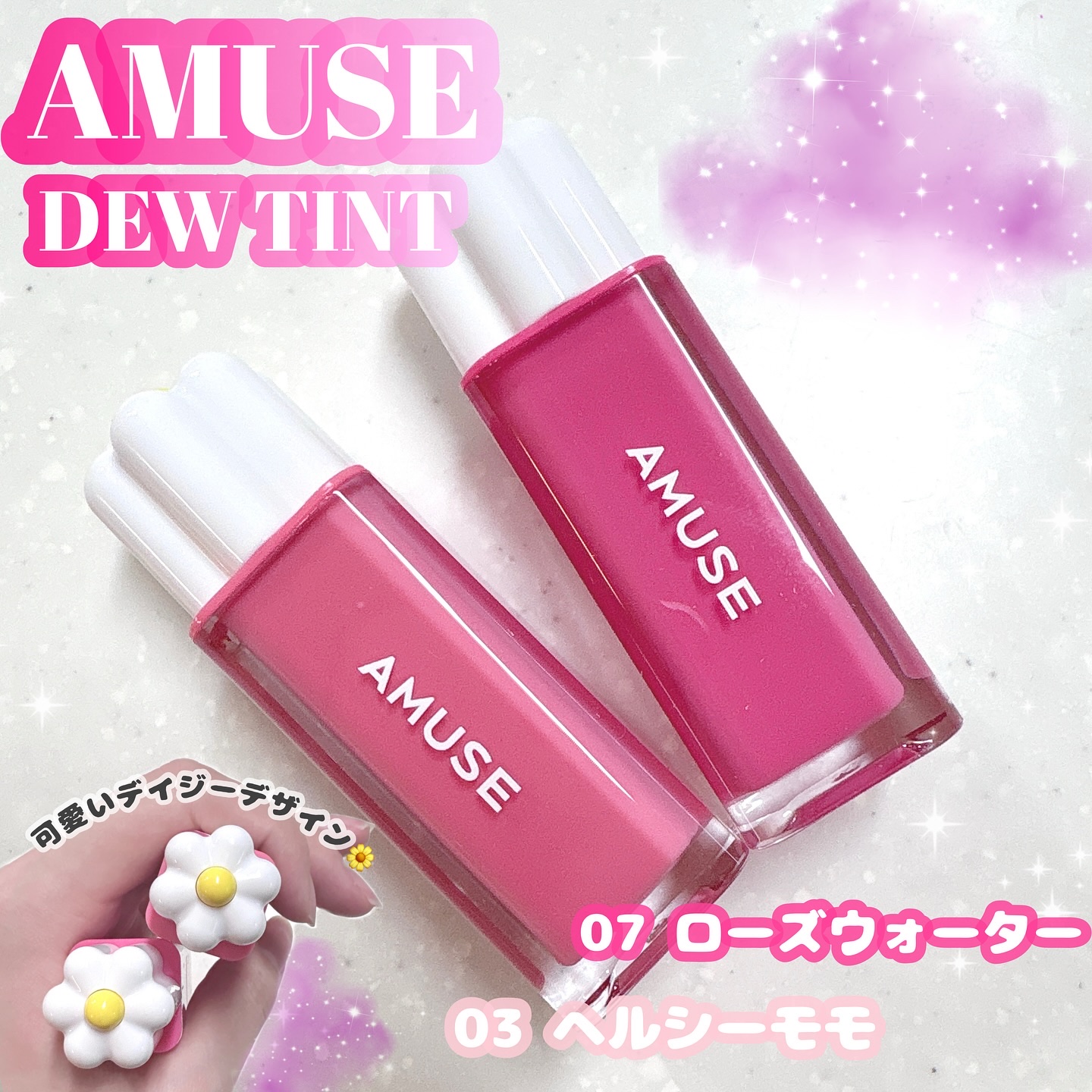 .@amuse.jpAMUSEの【飲み会リップ】こと、🏷️デューティント高水分のサラッとテクスチャーでベタつかずにちゅるんと仕上がりながらも肌馴染みのいいジューシーなカラーが可愛い🩷持ってるだけでテンションが上がるお花のパケ🌸最高に可...