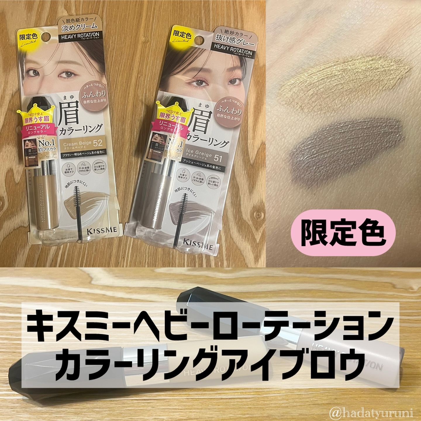 ヘビーローテーションさまからいただきましたヘビーローテーション カラーリングアイブロウEX 限定色をお試しさせていただきました。程よいコシのあるブラシで、眉毛にすっとなじませることが出来ます。ふんわりと自然になじんでくれるのが嬉しい。お試しさ...