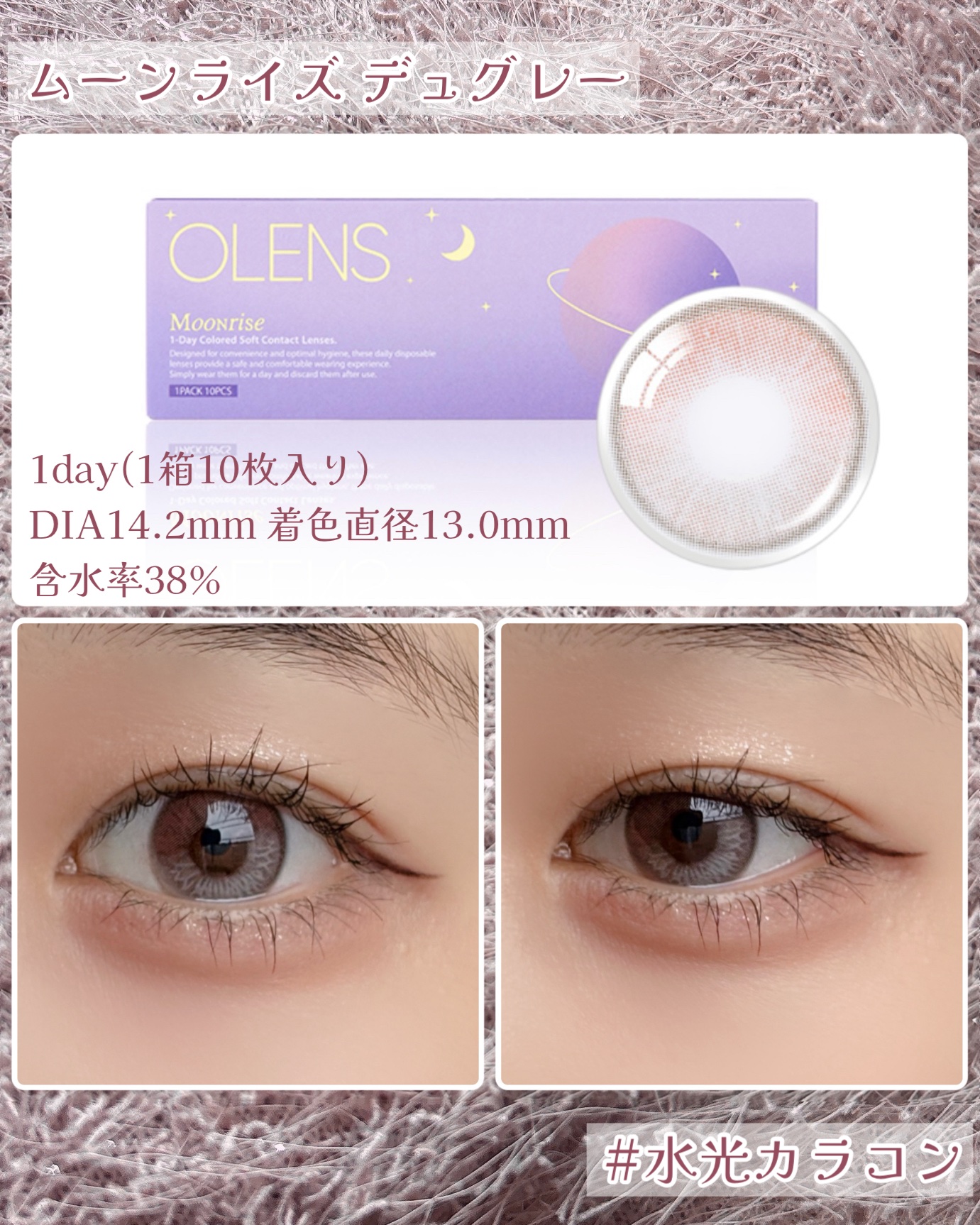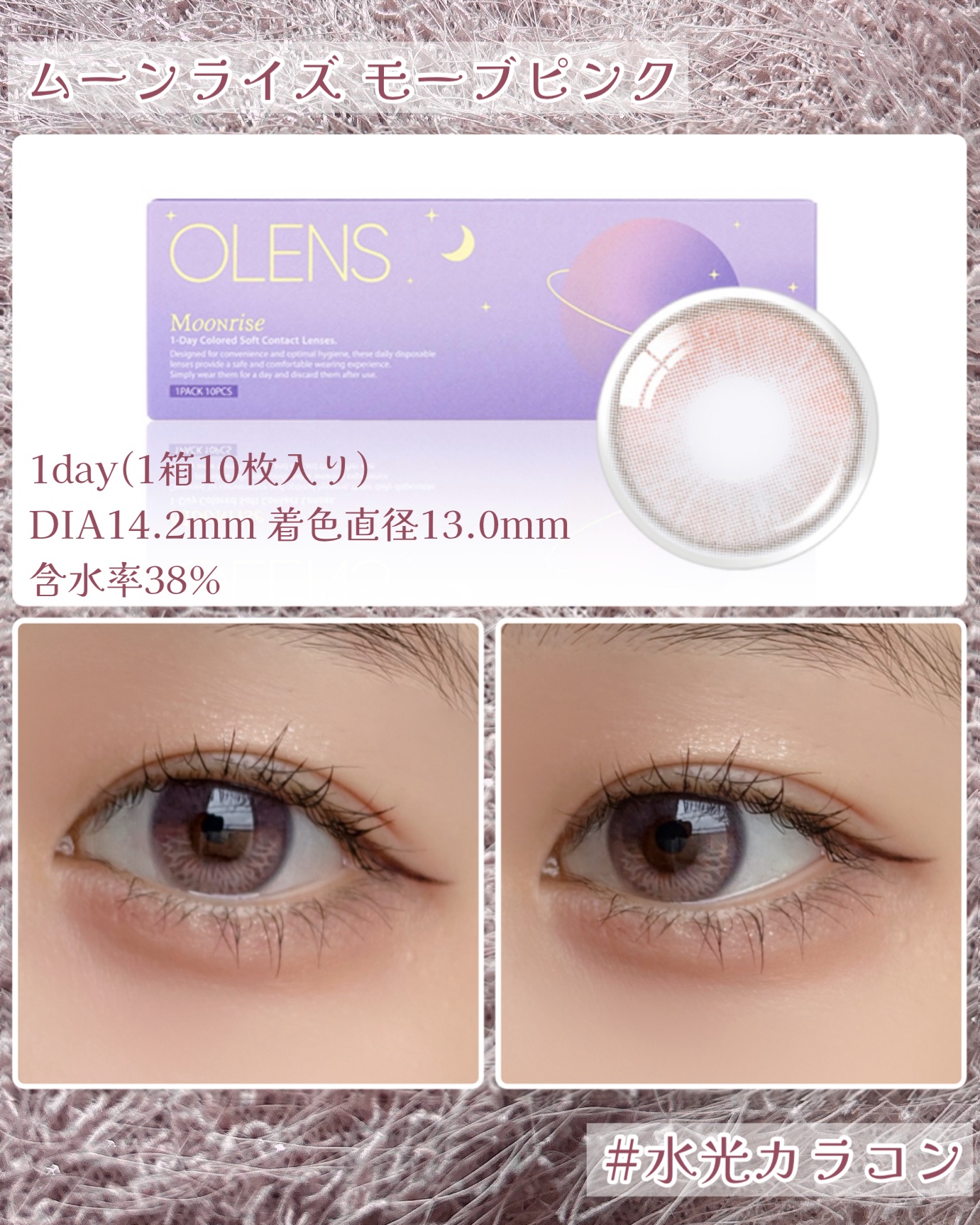 こんなカラコン待ってた!水光ツヤカラコンに新色登場✨️🎀item🎀OLENSMoonrise1dayモーブピンク/デュグレー/ファウンブラウンDIA14.2mm着色直径13.0mmまるで瞳に月が映ったようなデザインです🌙どのカラーも絶妙に色素...