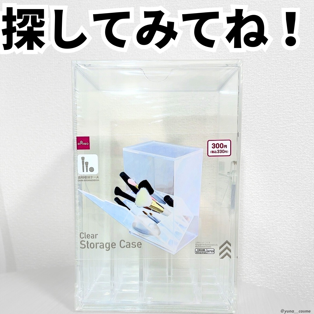 メイクブラシの収納でダイソーの透明収納ケース欲しいなと思っててやっと見つけることができました☺️小さなマスか12個大きめのマスが1個ありメイクブラシを立てて収納することができます✨手前を引くとパカッと蓋があいてブラシを立てかけることができ、す...