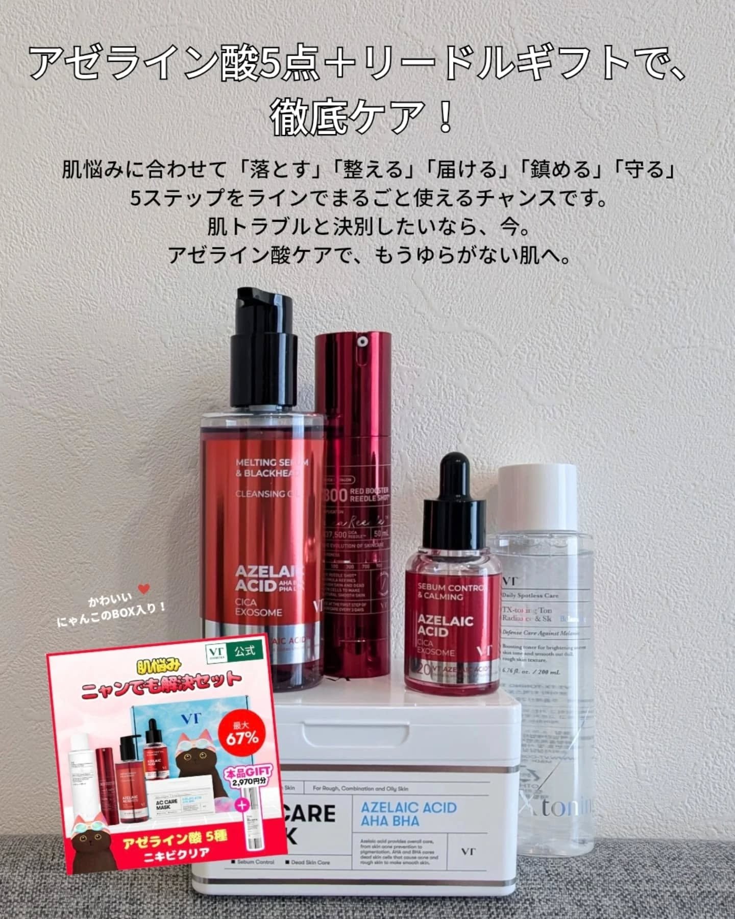 ❤️❤️❤️📣毛穴・くすみ・ニキビ…肌悩み全部まとめて解決したい人〜!VTの【ニャンでも解決セット(アゼライン酸)】が、メガ割でお得すぎるにゃ🐾セット内容🐈⬛🐈⬛アゼライン酸クレンジングオイル🐈⬛TXトーニングトナー🐈⬛レッドブースタ...