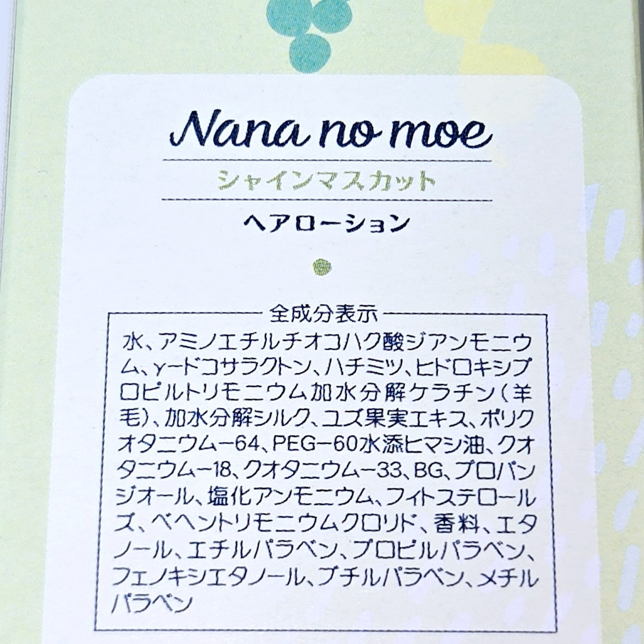 商品詳細情報nananamoe ヘアローション シャインマスカット