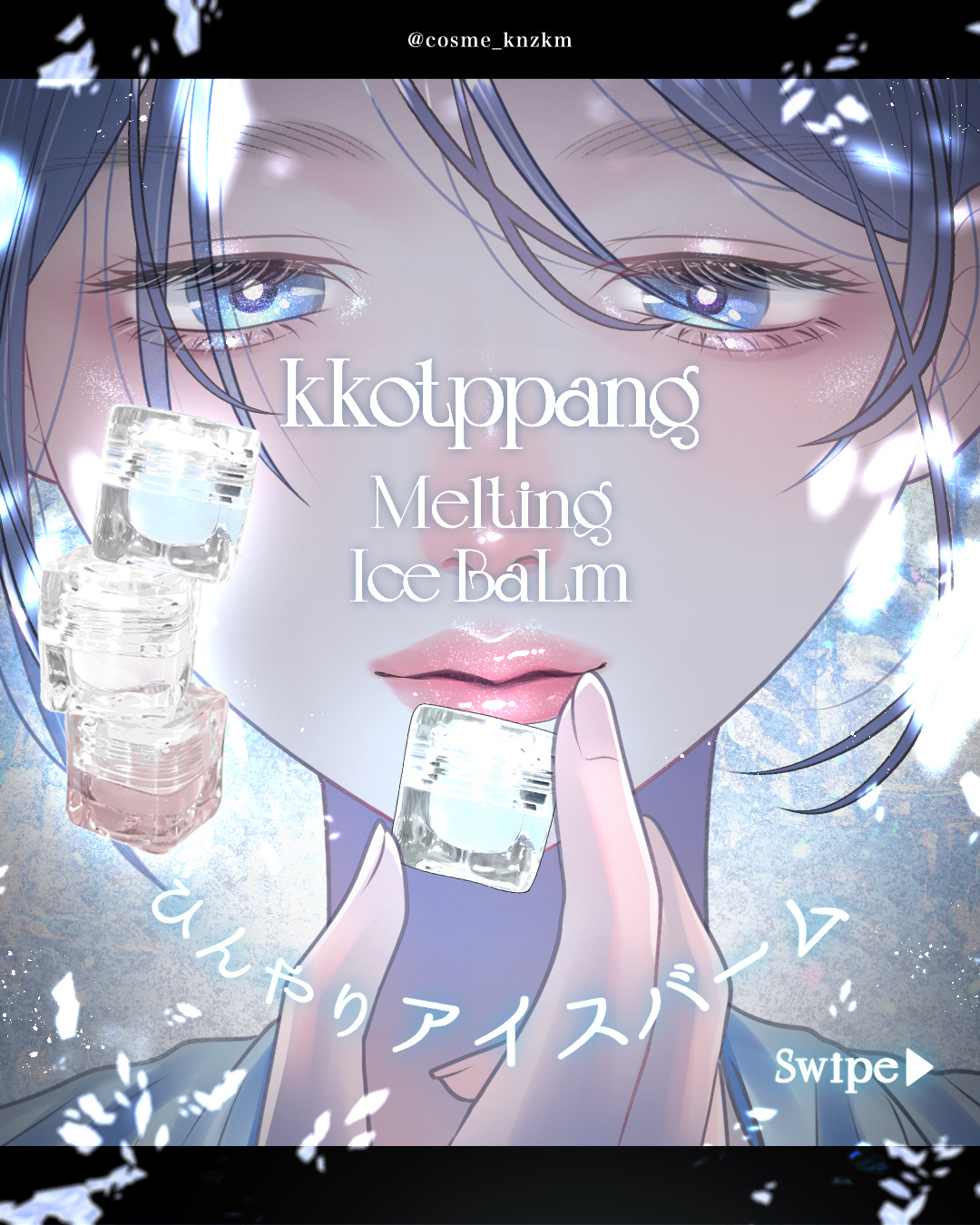 うるツヤ“アイスバーム”、新感覚リップケア🍨🤍▫️kkotppangコッパンメルティングアイスバーム01メルティングアイス02クーリングスノーアイス03プランピングピーチアイス各¥1,089(税込)氷みたいなビジュアルでコロンと可愛い♡♡3種...