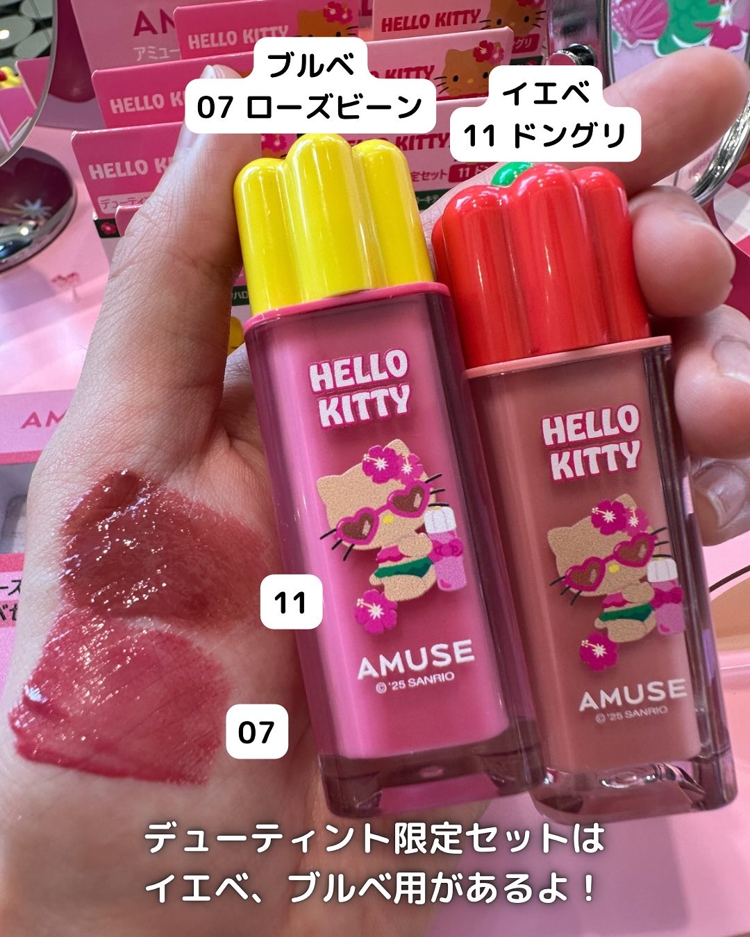 話題のAMUSE×日焼けハローキティのポップアップ行ってきたよ〜🐱@COSMETOKYOで開催中の夢コラボ、もう可愛すぎて全部欲しくなるレベル🥹💖なんとあのAMUSEのベストセラーが、サングラスかけた日焼けキティちゃん仕様になってるの!反則的...