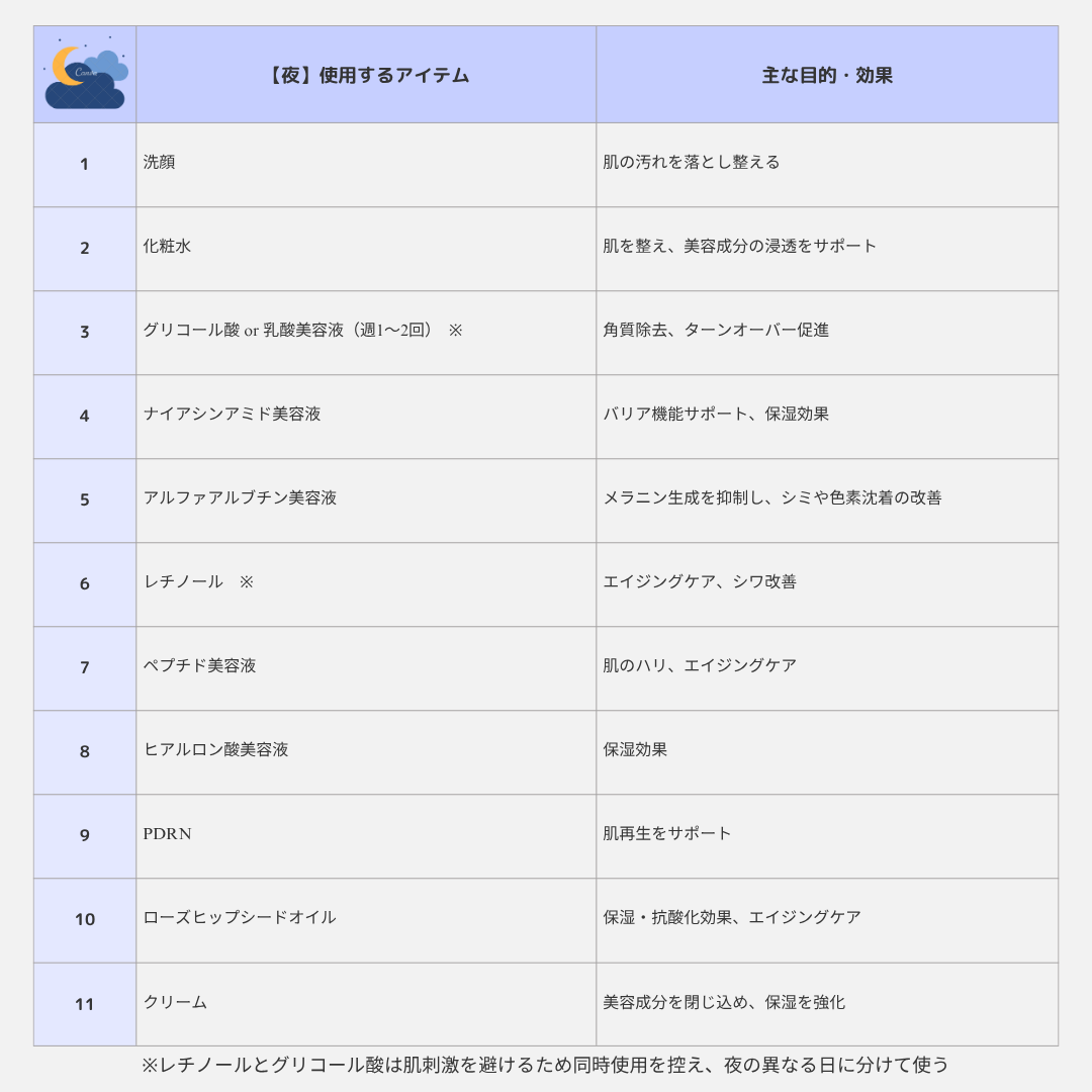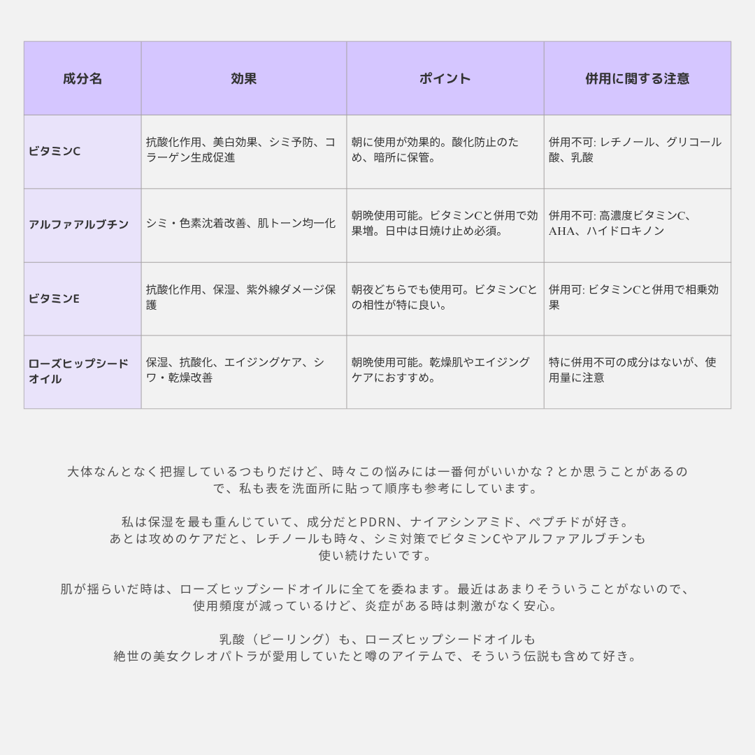 結構保湿重視の方は辛口評価のようなのですが、私もスキンケアはとても保湿重視です! 私のスキンケアステップは以下の流れが基本で、保湿はオイルとクリームでしっかり行うので、化粧水はキメを整えたり、肌を柔らかくして次のステップへ繋げるイメージです。こういった使い方だととても良いです! オイルはとても保湿に良いので、また紹介します!