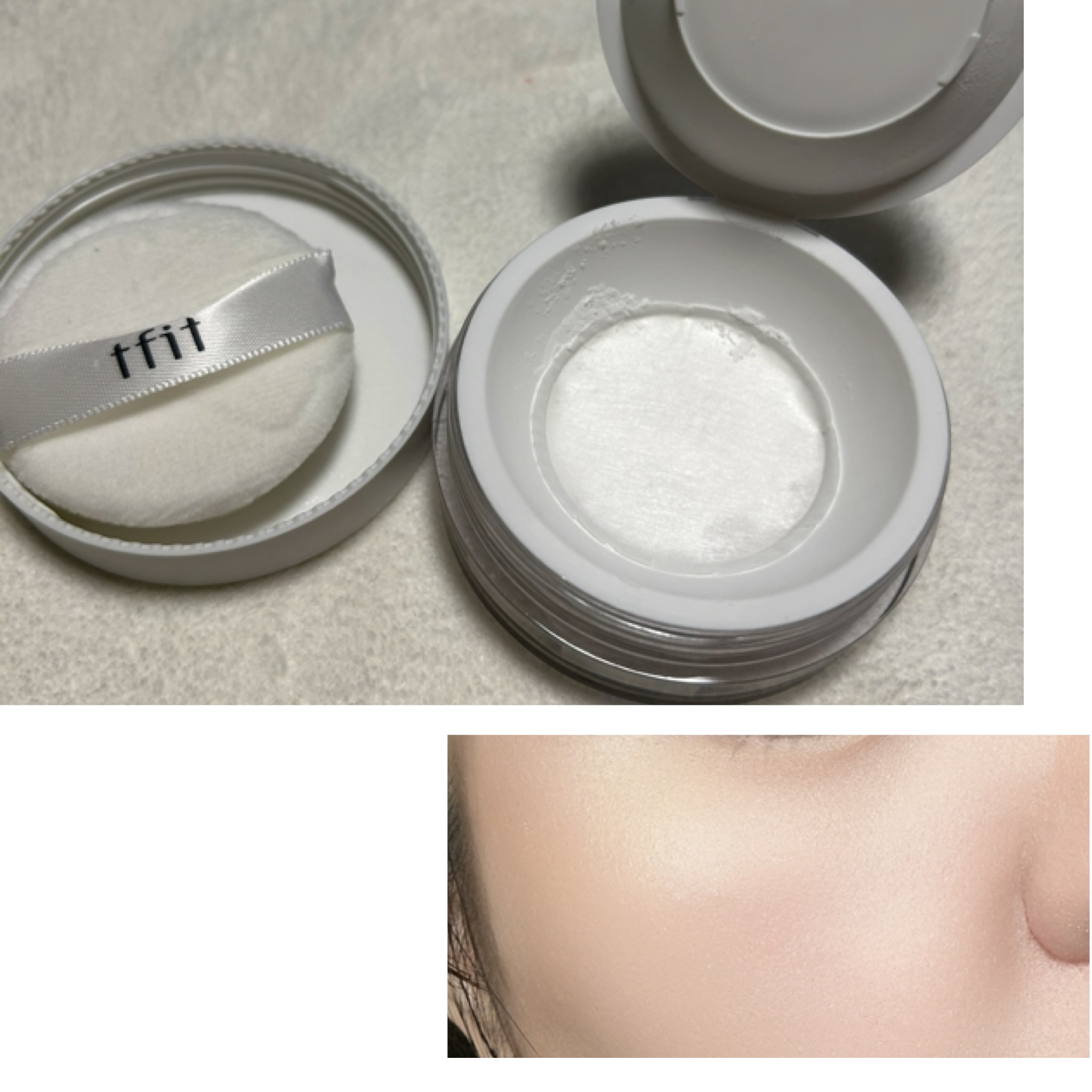 サラサラの白い粉で、フタの開け閉めでフワッと粉が舞うくらい軽い粉質です。 ふんわりしたお肌に見えて、毛穴もぼかしてくれます。 Whiteですが、白くなり過ぎず溶け込む感じです。 持ち歩きには不向きかなと。