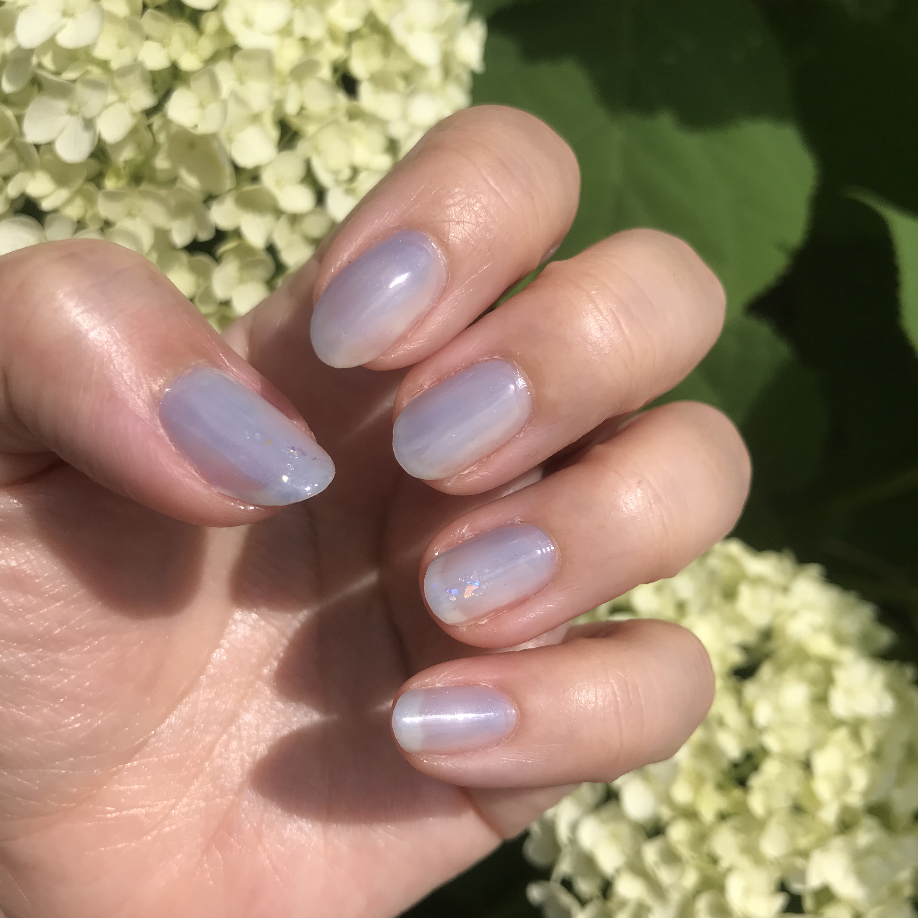 キャンメイクカラフルネイルズ N29ミルクシロップ N82クラウドレススカイ 親指、人差し指、小指は爪先にSV082で細いラインを描き、中指、薬指はAA225を重ねました。 ベースコート、トップコートはネイルホリックのものを使っています。