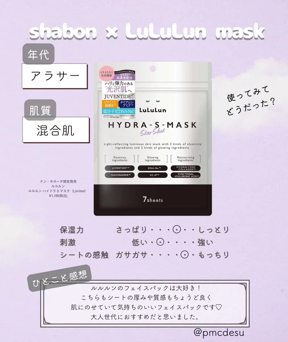 #PR#shabonプレキャン_ルルルンハイドラsマスクXのキャンペーンにて、ルルルン様(@lululun_jp)×shabon様(@shabon_official)の贅沢本気マスク「ルルルンハイドラSマスク」頂きました!圧倒的なツヤと弾力透...