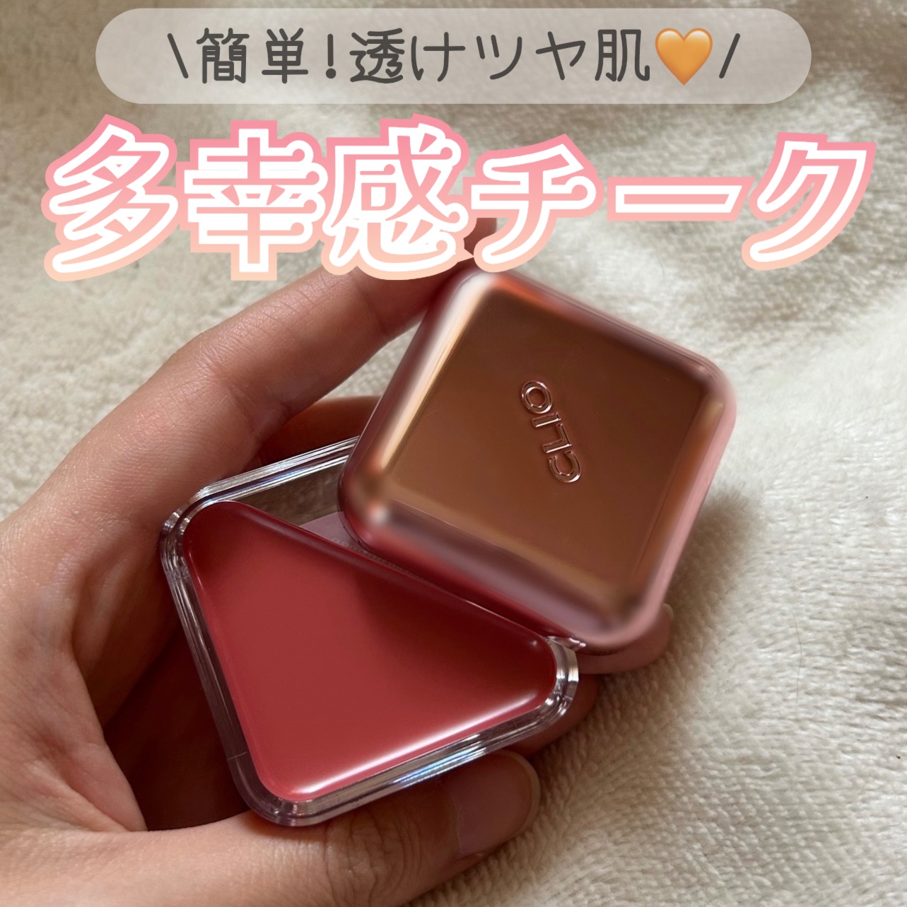 ほっぺたにツヤを仕込める! ツヤ肌好きさんにおすすめ! 手の温度でとろけるテクスチャ 割と色持ちもするほうかと。 リップとしては発色がふんわりなのでリップよりかはチークようかな!