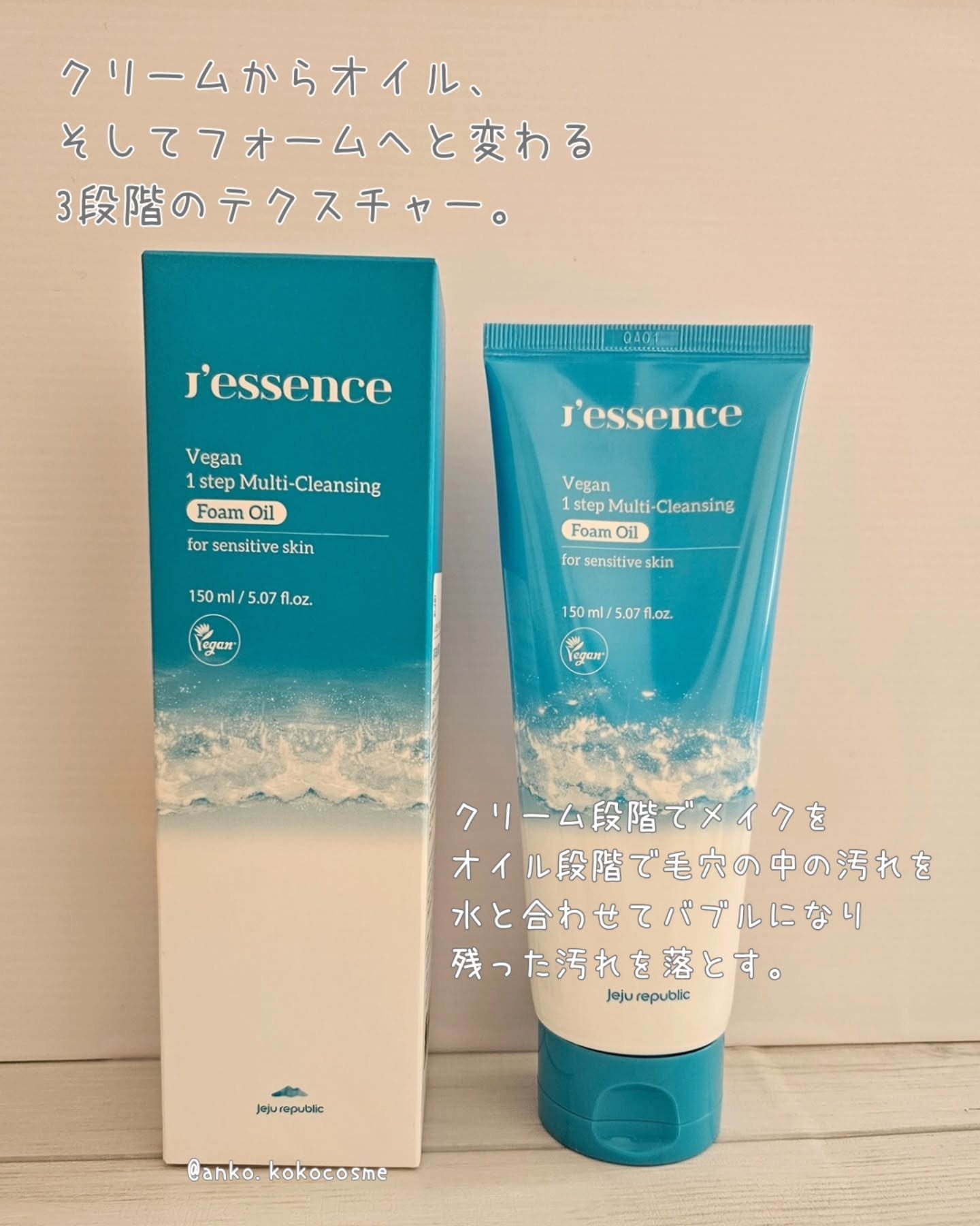 環境にやさしい原料で作られているクレンジングなので敏感肌さんでも使いやすい! クリーム→オイル→バブルと、変化してスルスルとメイクを落としていきます! ダブル洗顔不要!これひとつで大丈夫なのが楽だし良い🙆♀️