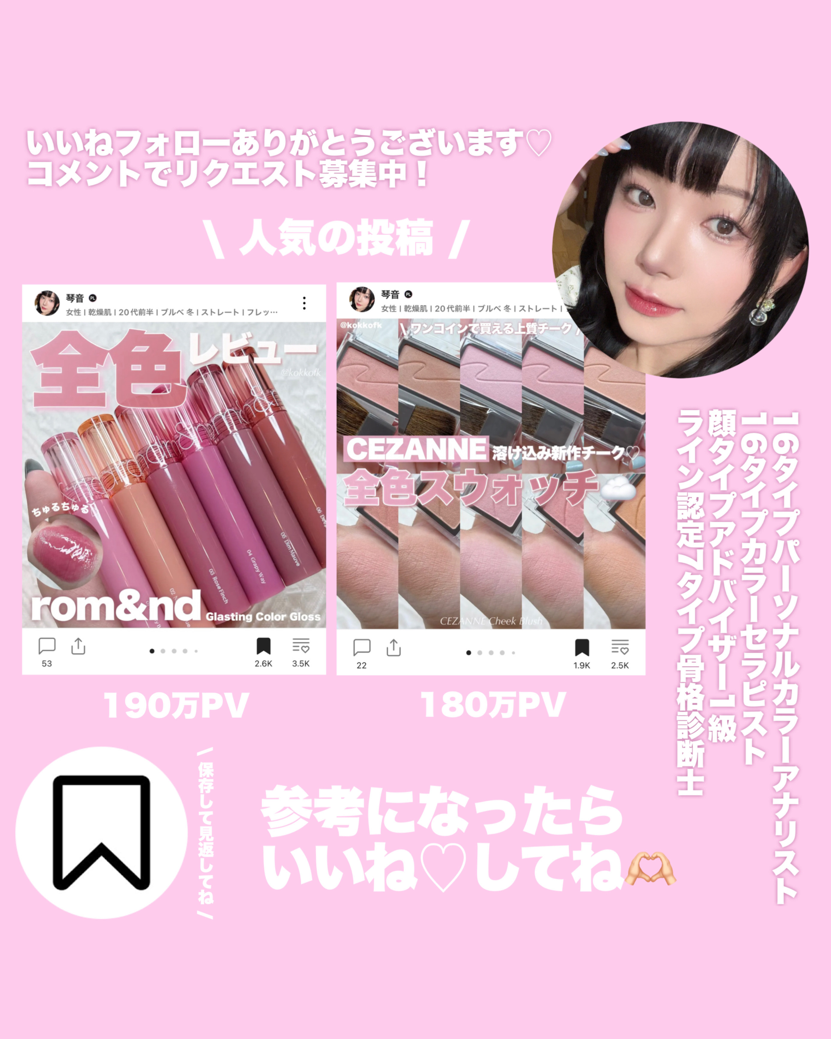 薄く唇に密着する新作マットティント。 マットなのにかなりしっとりとしていて 乾燥を感じなくてびっくりでした! 一気にこなれ感が出るトレンドカラーです♡ やや青みの華やかローズレッド 公式画像より鮮やかめに感じました。 やや黄みの強くて深いオレンジレッド ストロングオータムに超激推しです! やや黄みの非常に深く濃いダークブラウン ディープオータムに激推しです! かわいい雰囲気になれるピンクリップです♡ やや青みの柔らかいくすみピンクベージュ ミューテッドサマーにおすすめです! 青みの落ち着いたローズピンク やや青みのとても鮮やかなビビッドレッド ビビッドウィンターに特におすすめ! 既存マットティントよりもさらに ふわふわなマット感が魅力のリップで、 軽くティッシュオフしてもほとんど落ちない◎ マスクにも激推しのティントなので、 ぜひ皆さんもチェックしてみてね❤︎