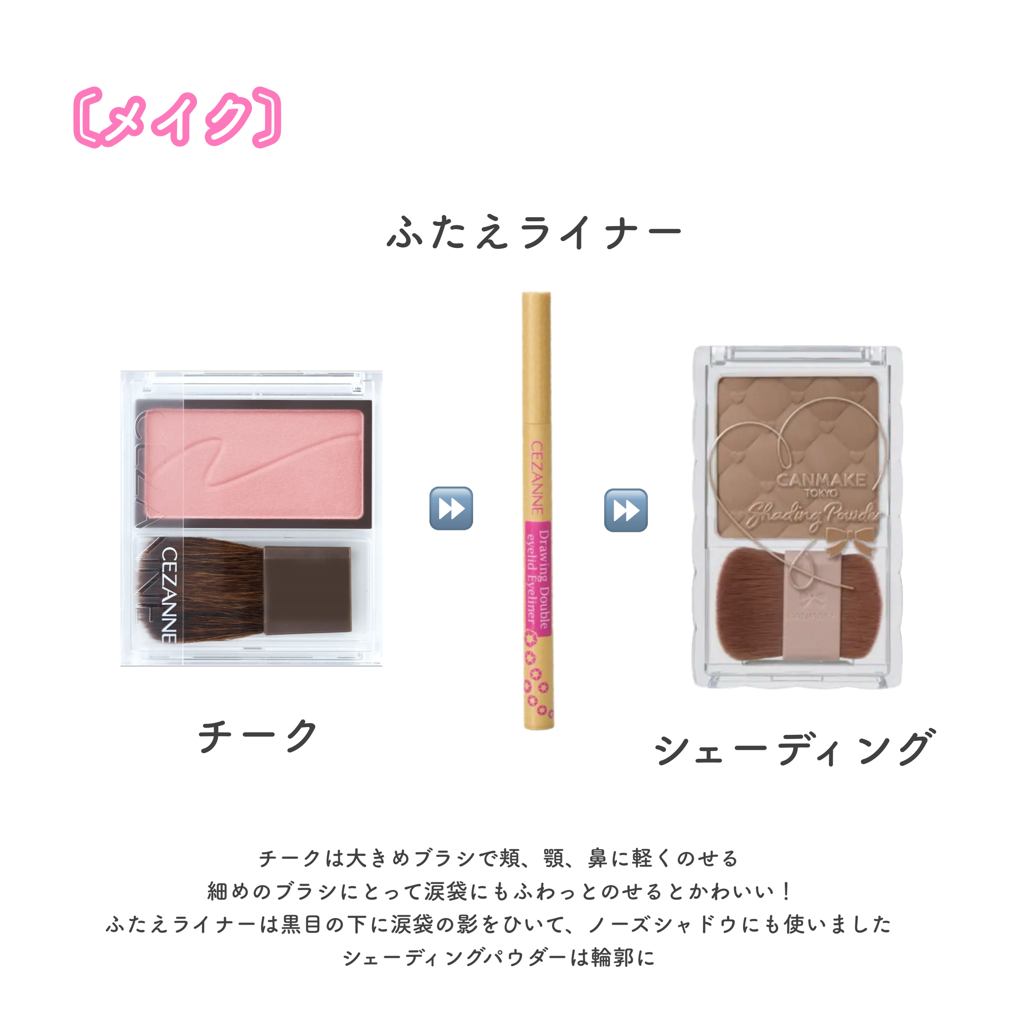 FJKの毎日スクールメイク💄〔アイメイク〕#キャンメイク パーフェクトマルチアイズ#CipiCipi ポイントコンシーラー#CEZANNE 描くふたえアイライナー#キャンメイク 3wayスリムアイルージュライナー#CEZANNE クリアマスカ...