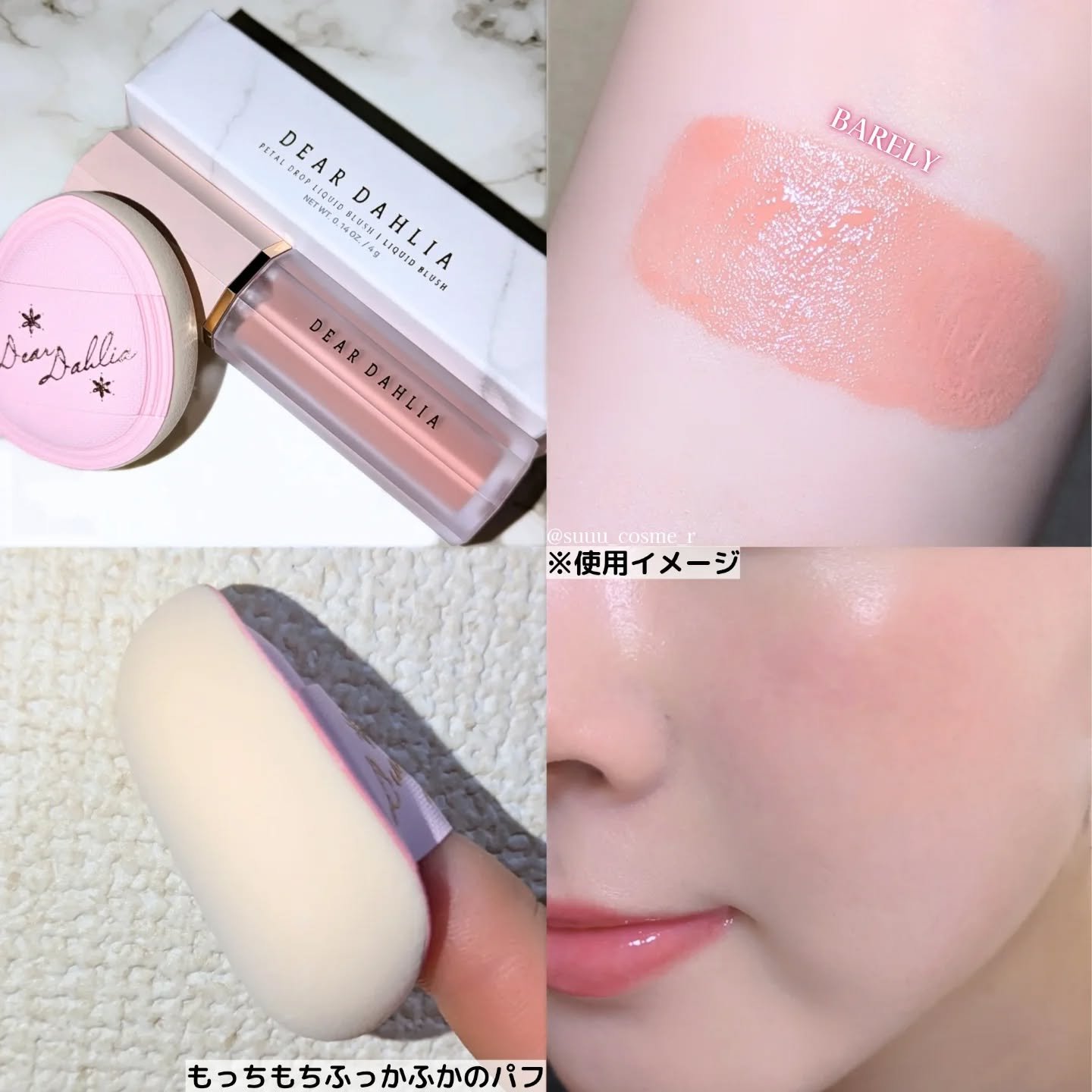 DEARDAHLIA人気チークとちびパフがセット🌸【ペタルドロップリキッドブラッシャー企画セット】✧DEARDAHLIA-ペタルドロップリキッドブラッシャーベアリー-フィンガーパンパンパフみずみずしさのあるリキッドチーク。ポンポンと広げていく...