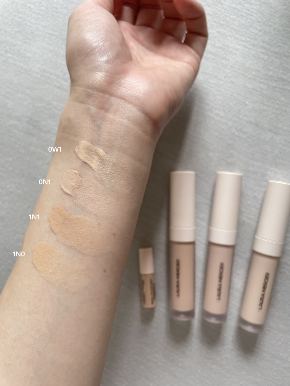 こんにちは。ソウちゃんです。最近毎日愛用している、ローラメルシエのコンシーラーをご紹介します🌟今回0N1と0W1を追加購入したので、色選びの参考になればと思い手持ちのカラーをスウォッチしてみました!私の肌は、赤みが出やすい明るめのトーン。1N...