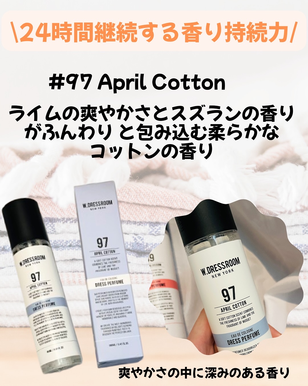 見た目もおしゃれだし持ち歩きにもいいかも🤭💕 49は水気を含んださわやかな桃果汁が口いっぱいに広がるような甘い桃の香り🍑で、97はライムの爽やかさとスズランの香りがふんわりと包み込む柔らかなコットンの香りらしいよ。 99% 脱臭されるらしいからすごいと思ったし、繊細な感じミスト噴射で使いやすいし、香りが続きやすいなぁと思ったよ🌼 Qoo10で購入できるファブリックミスト!