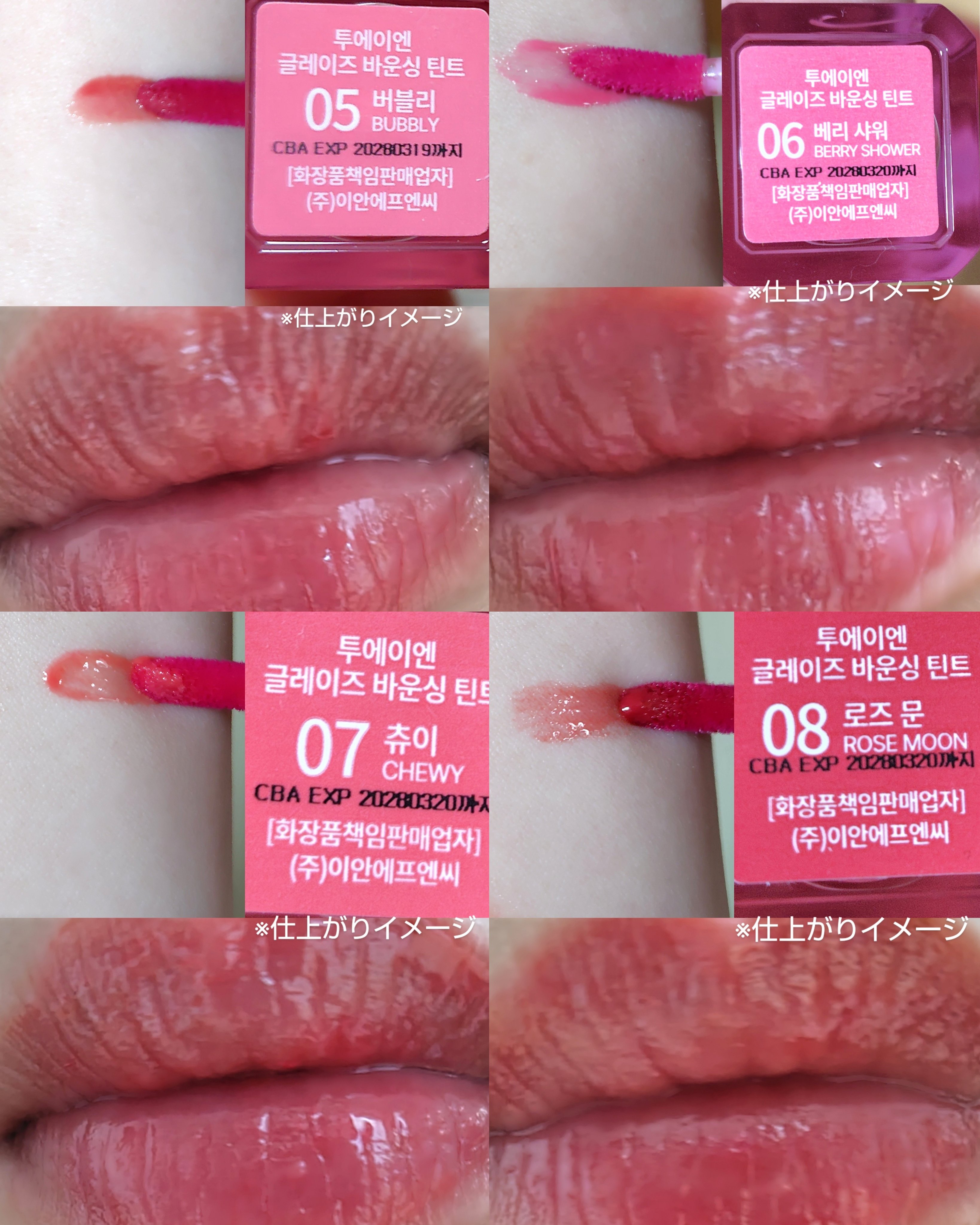 2aNのグレイズバウンシングティント♥パケが可愛いのももちろん、色味も可愛すぎる!自然な色味から濃いめの色味まで幅広くあって、色んなシーンに合わせて使えそう♪なめらかなテクスチャーで、重ね塗りしてもよれたりせず、ツヤツヤ綺麗な仕上がりになりま...