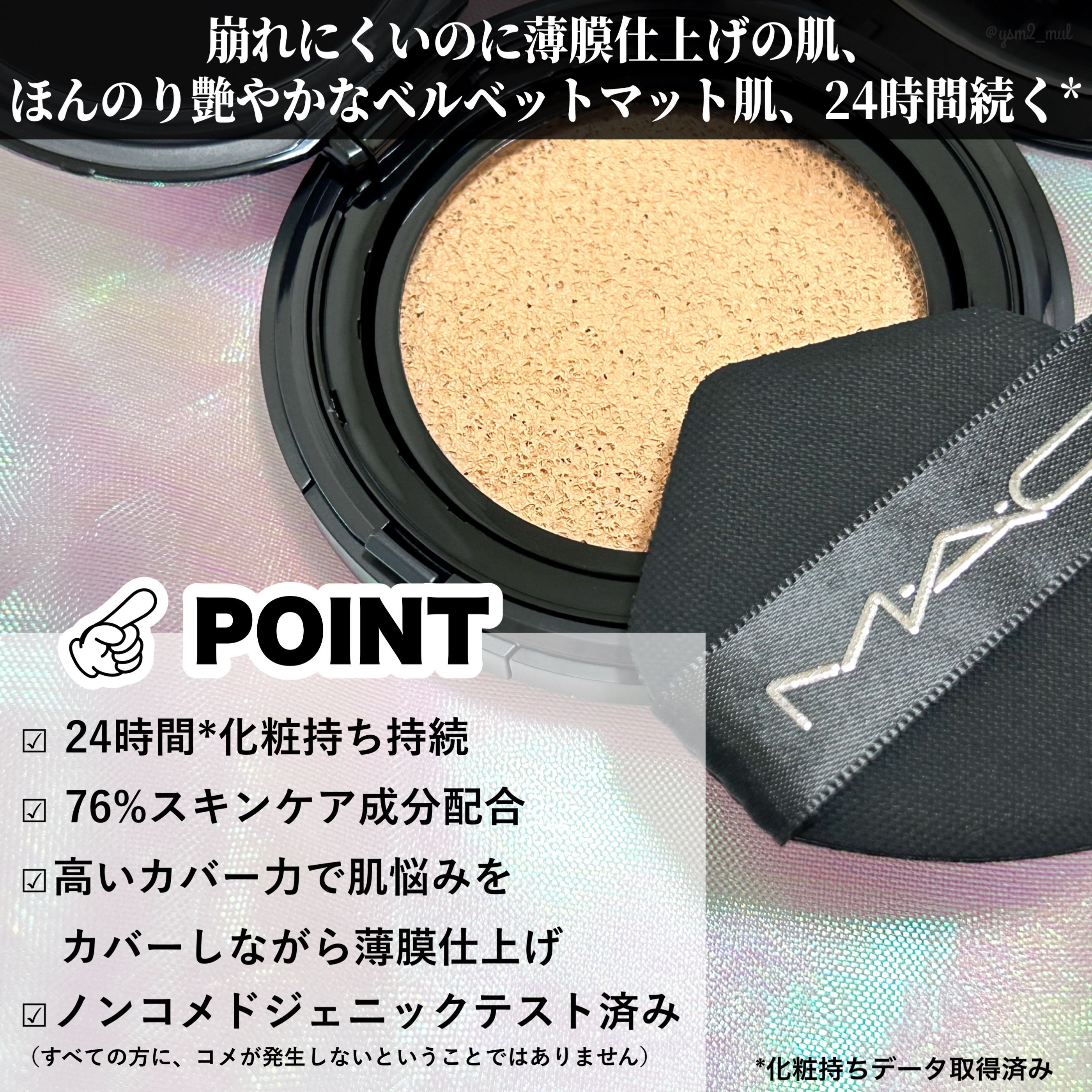 \崩れにくく薄膜仕上げのベルベットマット肌 /M・A・Cスタジオフィックスロングウエアクッションファンデーション◼︎販売価格:7,700円(税込)◼︎カラー:N18SPF50/PA+++LIPS様のプレゼントにていただきました𓂃🪿𓈒𓏸スタジオ...