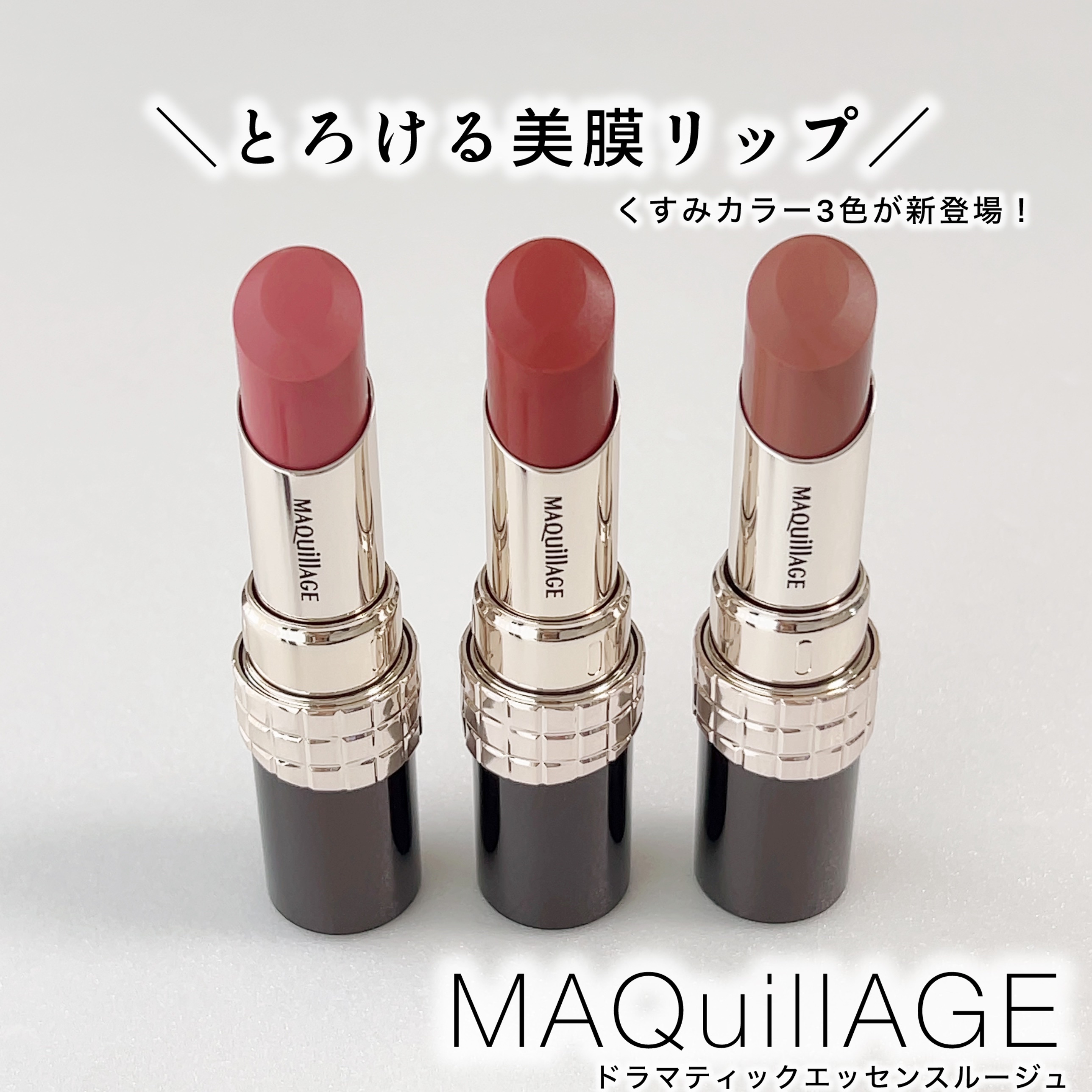 「マキアージュさまからいただきました」MAQuillAGE ドラマティックエッセンスルージュ を使ってみました!するするーっととろけるような塗り心地がすごくお気に入り🩷RD500ココロ踊る方へはニュートラルカラーPK700飾らない主張はブルー...
