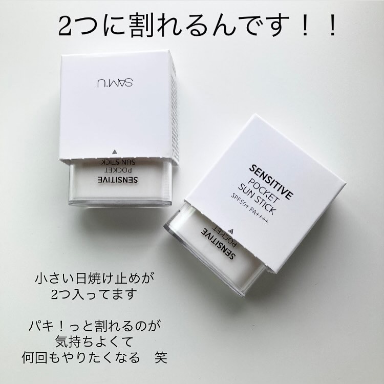 #PRSAM'Uセンシティブポケットサンスティック持ち運びにピッタリなコンパクトなサイズ感のサンスティック✨スティックタイプなので手を汚さずに手軽にUVケアができるのも嬉しい🥰ベタつかずにサラッとした使い心地も好きです🩵#サミュ#samu#ポ...