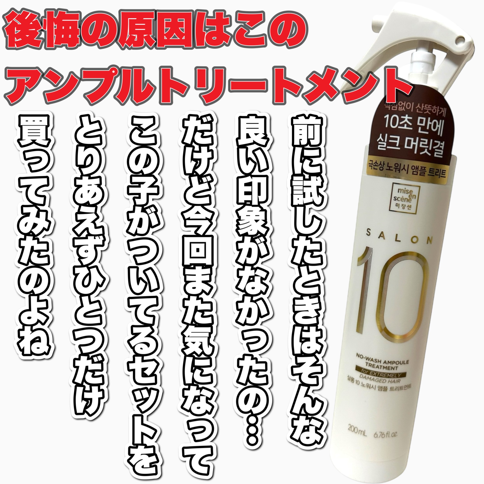 #PRaspaカリナがモデルしててサロンケアが家で叶うって噂の#ミジャンセンの#サロン10を私も使わせてもらった🩶ダメージヘア用(細くてハリコシのない髪向け)と超ダメージヘア用(太くてひどく傷んだ髪向け)があって、私が使ってみたのは超ダメージ...