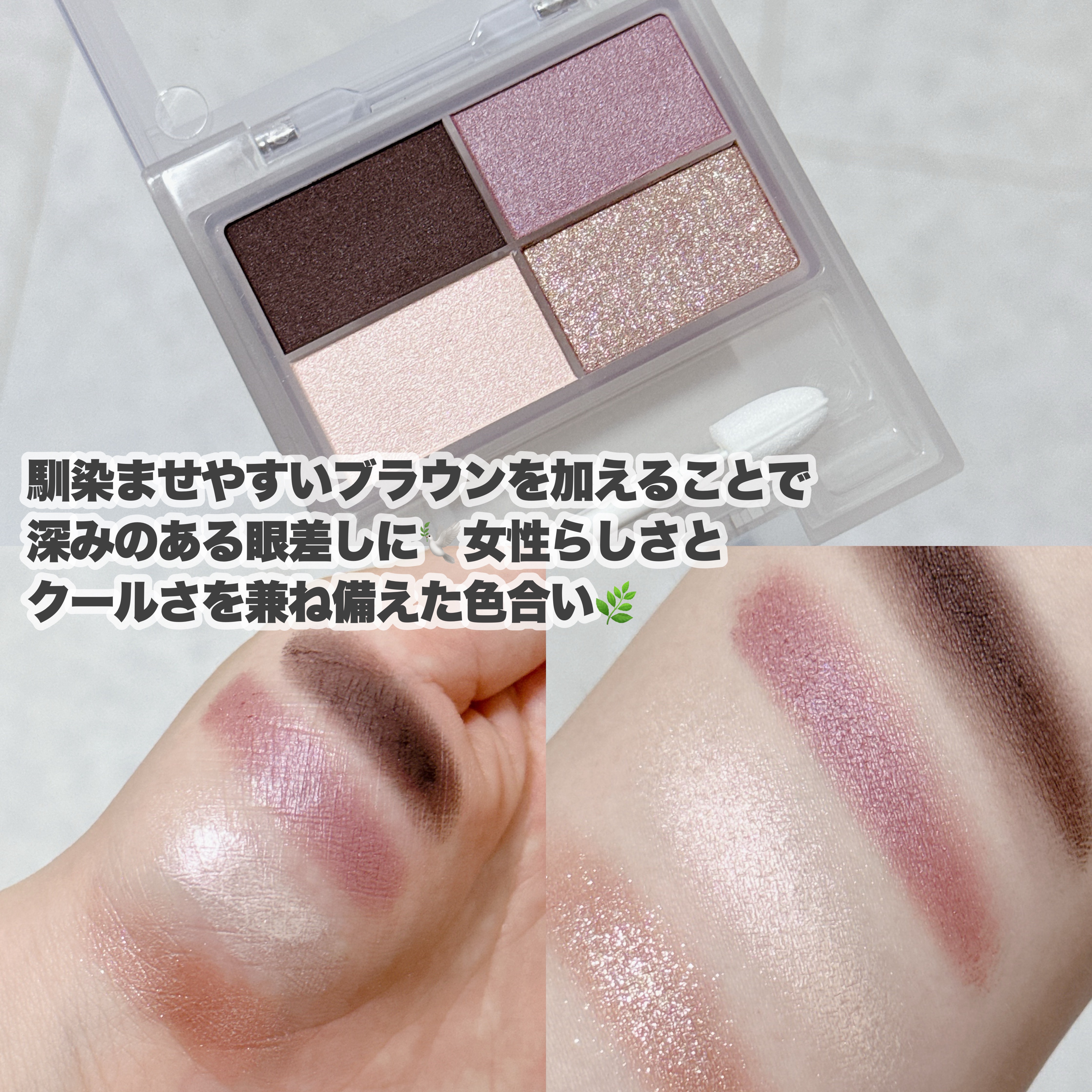 - シェードカラー・ミディアムカラー・ニュアンスカラー・スパークルカラーの4色が1つにまとまったメイクパレットです。 アイシャドウだけでなく、アイブロウやシェーディングとしても使えるカラーが入っているので、眉から目元まで、パレット1つでアイメイクが完成します。 カラーの組み合わせ次第でアレンジが広がり、様々なシーンに合わせたアイメイクを自在に楽しめます。 高密度ウレタン素材のチップ付きです。