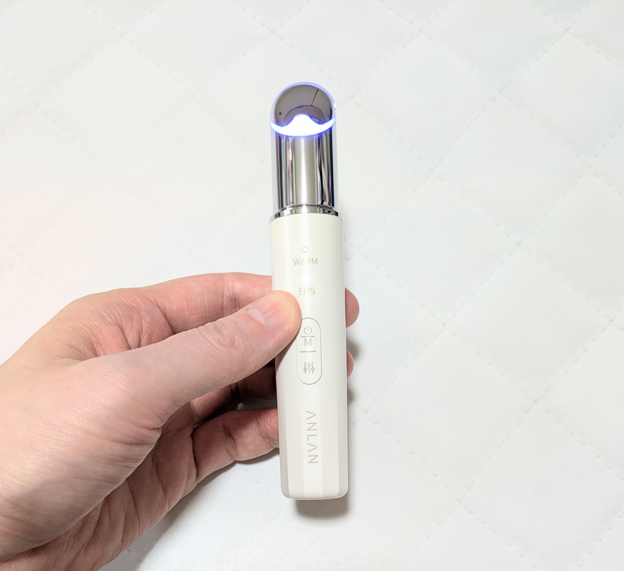 - ANLAN EMS目元美顔器はEMS、温熱、微振動、イオン誘導、2色LED搭載の複合美顔器です。毎日10分で気になる目元·口元をケア!