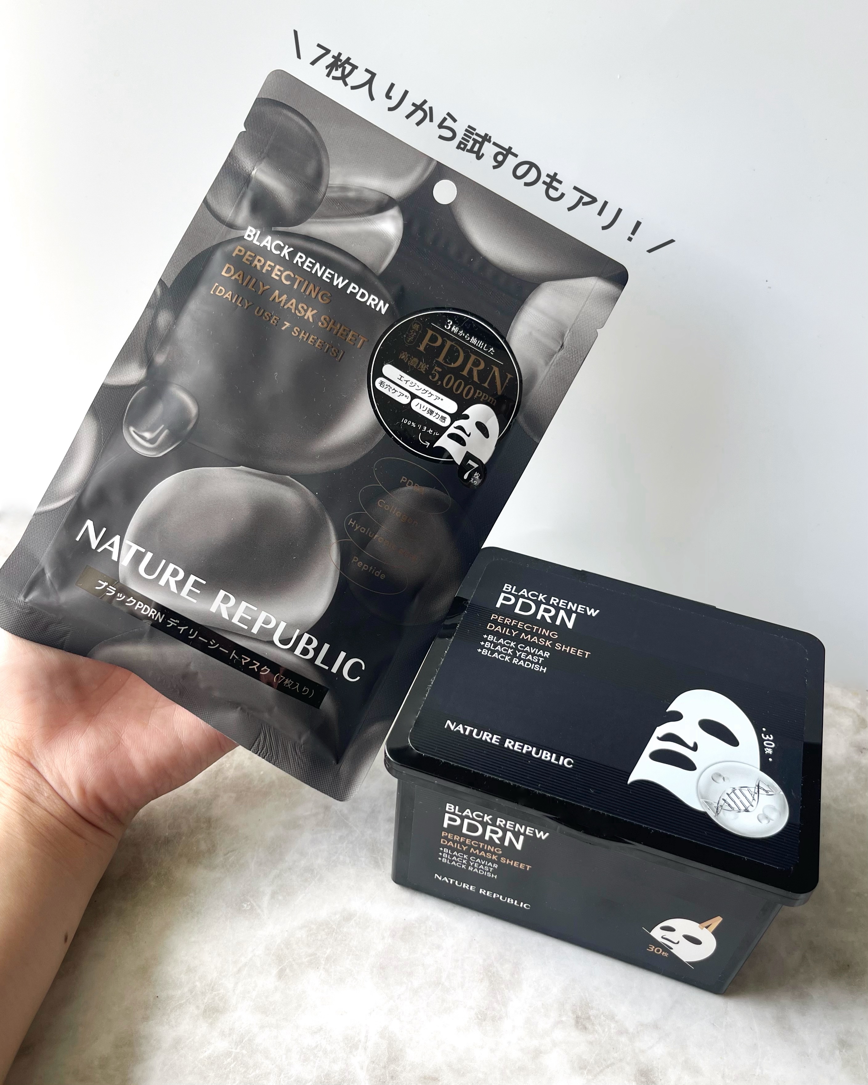 シートマスクにもキャビアの時代!?😳毎日なんだか贅沢な気分に浸れちゃう🖤キャビア由来PDRN*をたっぷり含んだNATUREREPUBLICの【ブラックPDRNデイリーシートマスク】とろ〜り濃厚なミルクタイプのエッセンスがシートにたっぷり染み込...