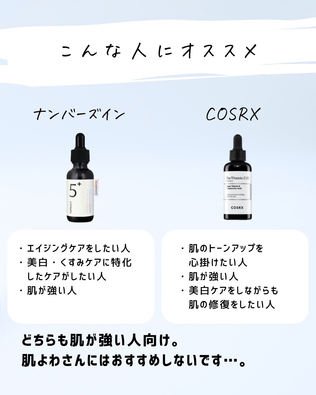 肌が荒れた時にビタミンCがいいとSNSで見かけたというフォロワーさんがいたけど、これは本当に辞めてほしい(濃度にもよるけど) ビタミンCは攻めのケアでもあるから、肌が敏感な時には避けてほしい。 でも、メラニン予防とか毛穴ケアには本当に良い商品でもあると思うから、使い方を間違えずに選択してほしいな!!