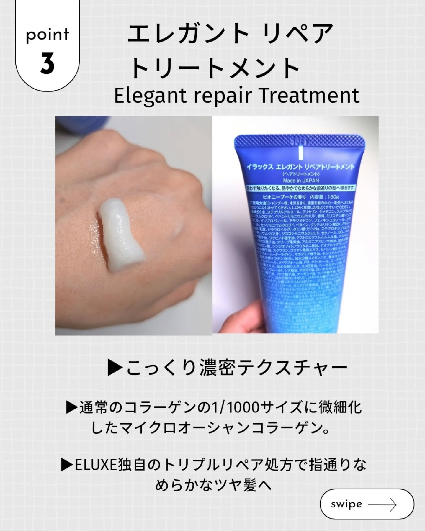 | 全体的な仕上がりは つるんと指通りが良くまとまりも良くて 個人的にはとっても好きな使用感です! | 詳細を見る | ||