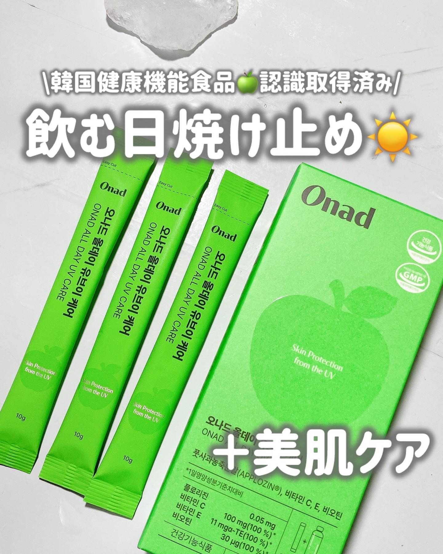 🍏【PR】@Onad_beaute外出が増える季節のUVケア、塗るだけで満足してない?💭ONADの「オールデイUVケア」は、“飲む日焼け止め”として話題の韓国発インナービューティーアイテム💫KFDA(韓国食品医薬品安全処)認証の健康機能食品で...