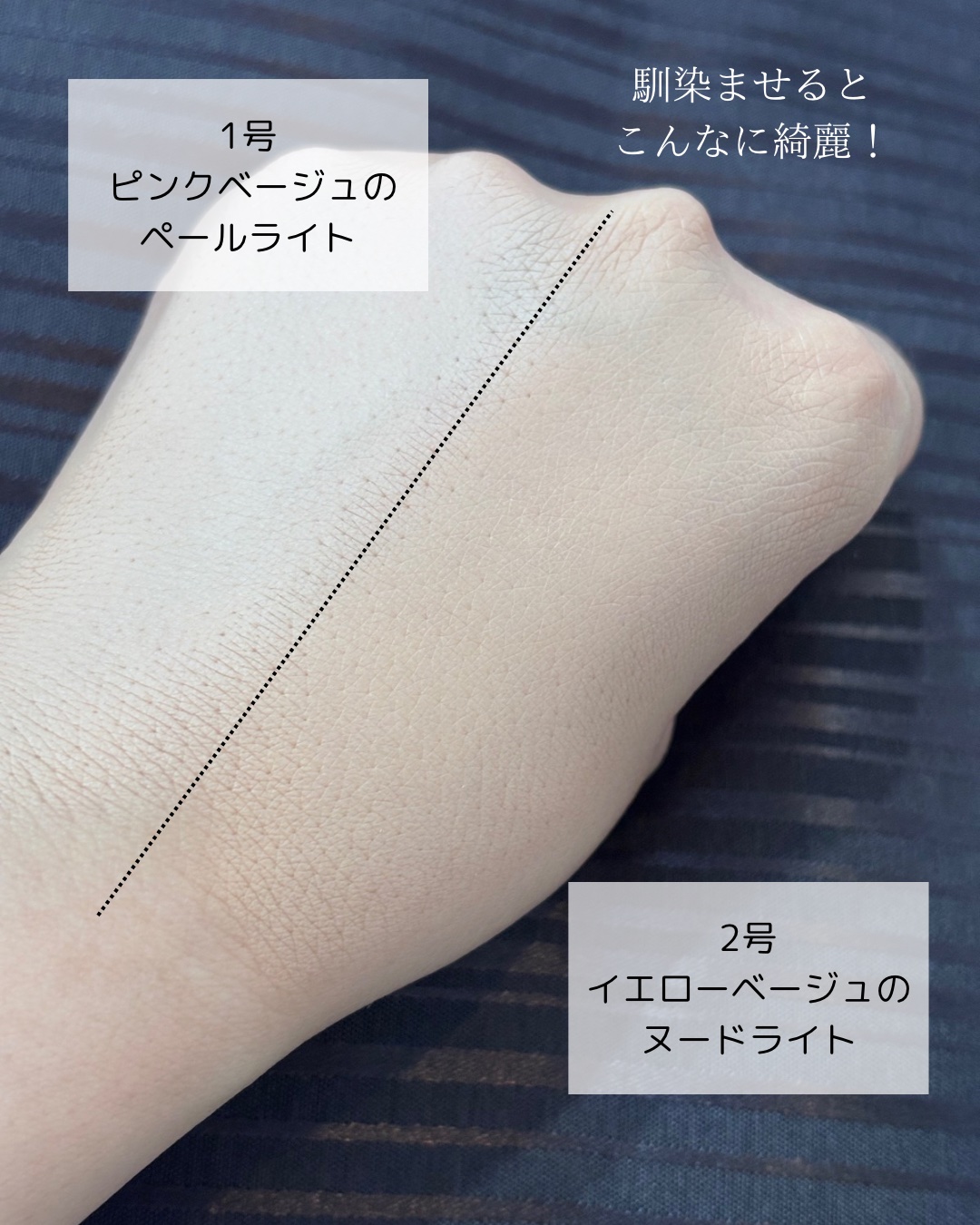 - <02 NUDE LIGHT(23号)> 水、酸化チタン、シクロペンタシロキサン、メチルトリメチコン、プロパンジオール、エチルヘキシルメトキシシンナメート、ポリメチルメタクリレート、ブチルオクチルサリチル酸、カプリリルメチコン、ラウリルPEG-8ジメチコン、トリメチルシロキシケイ酸、シクロヘキサシロキサン、ナイアシンアミド、ナイロン-12、PEG-10ジメチコン、HDI/トリメチロールヘキシルラクトンクロスポリマー、酸化鉄(CI 77492)、塩化ナトリウム、ブチレングリコール、ジステアジモニウムヘクトライト、水酸化アルミニウム、セチルPEG/PPG-10/1ジメチコン、スベリヒユエキス、ステアリン酸、ジメチコン、パンテノール、トリエトキシカプリリルシラン、酸化鉄(CI 77491)、安息香酸ナトリウム、ジメチコン/ビニルジメチコンクロスポリマー、酸化鉄(CI 77499)、ソルビン酸カリウム、香料、トコフェリルアセテート、エチルヘキシルグリセリン、トリソジウムエチレンジアミンジコハク酸、アデノシン、シリカ、1,2-ヘキサンジオール、ヒアルロン酸、加水分解ヒアルロン酸、ヒアルロン酸ナトリウム、チャ葉水、ティーツリー葉エキス、ペンタエリスリチルテトラ-ジ-t-ブチルヒドロキシヒドロケイヒ酸エステル、トコフェロール