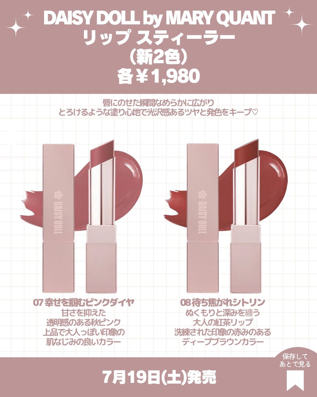 8月2日(金)より順次発売 PLAZA、MINiPLA、PLAZAオンラインストア限定 → #excel(#エクセル)・パウダー&ペンシル アイブロウEX「アイシナモロール」(限定デザイン2色)各¥1,595 8月21日(水)発売 → #BLENDBERRY(#ブレンドベリー)・リップバルーン(新3色うち限定1色)各¥1,650 9月1日(日)発売 → #CLUB(#クラブ)・すっぴんパウダーC ホワイトフローラルブーケの香り ハローキティ コラボ デザイン(限定)¥1,760