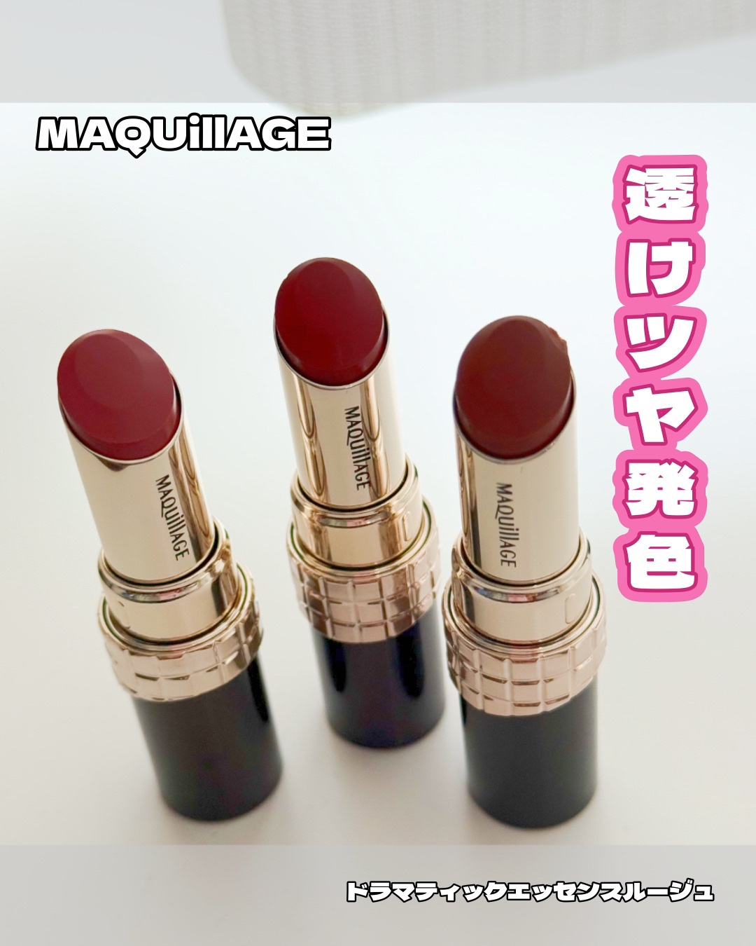 マキアージュさまからいただきましたマキアージュドラマティックエッセンスルージュ◎BR300マイルール◎RD500ココロ躍る方へ◎PK700飾らない主張するするなめらかな塗り心地◎保湿と色持ちを両立した“とろける美膜リップ”からくすみカラー3色...