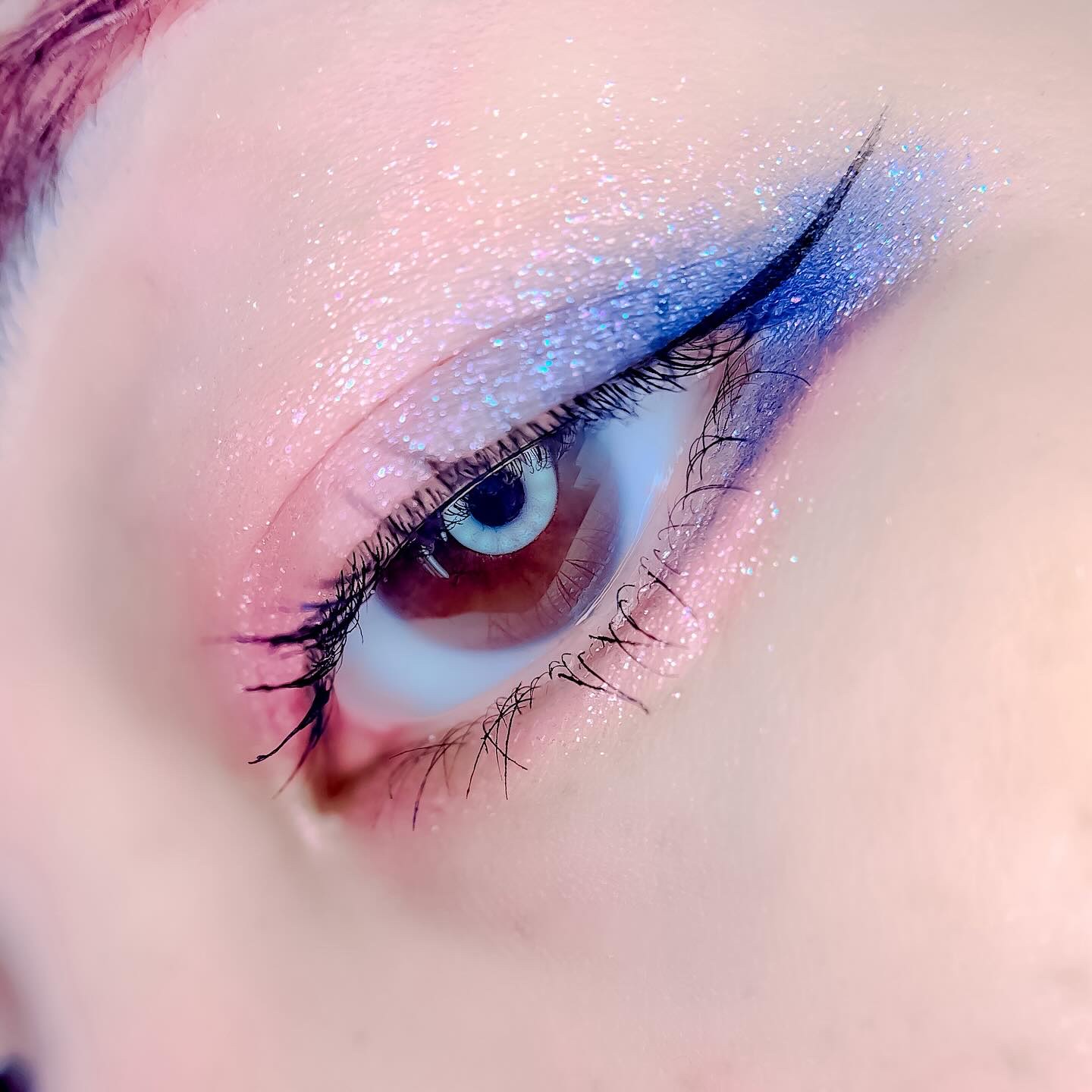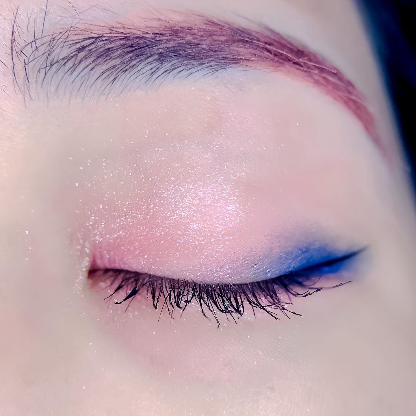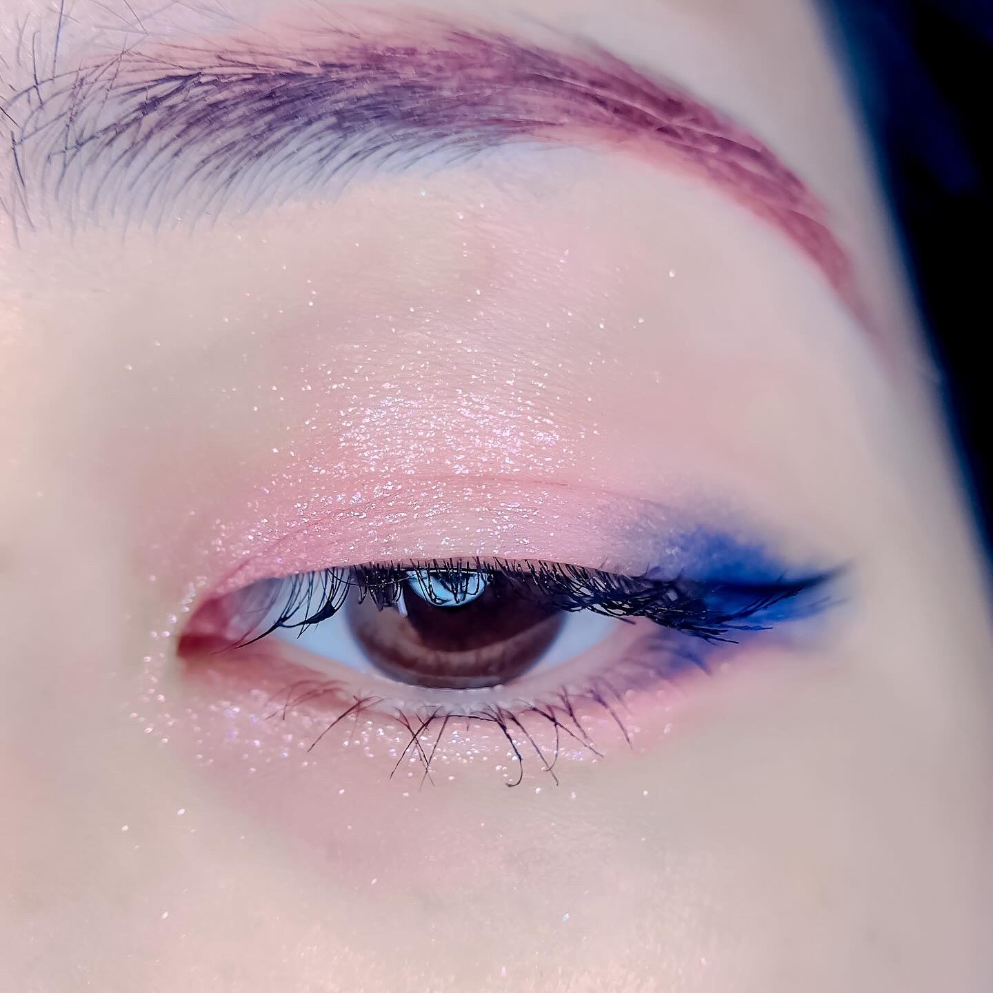 ベースに右上、目頭から黒目上に真ん中、黒目〜目尻に右下を、左上を目頭にくの字に塗ってもらいました✨ ピンクサクラよりもクールな感じで、目で見た色より私の肌では紫っぽく発色しました😍 上2つはラメはぎっしりでときめく💓 ブラウンメイクがとても苦手だけれどこれならブラウンメイク出来そう👌(かなり紫寄りですが) くすみ感は強いので苦手な方は厳しいかも…(特に真ん中) クールな印象になるので大人顔さん向けor大人顔になりたい方向けのイメージです✨