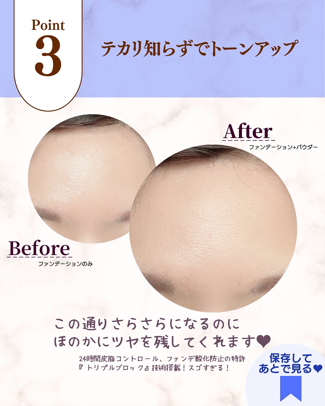 - もう粉で埋めない、「生肌パウダー」で呼吸する肌へ ヒアルロン酸配合の美容液パウダーが保湿しながらテカリ・くすみをカバーして、 24 時間*生美肌つづく。 <商品特性> ・[新感覚] 美容液生まれの「生パウダー」重ねても粉っぽさゼロを目指す 匕アル口ン酸美容液を固めて、液体から粉末に。より柔らかく、より細かく、より密着するパウダーで*、まるでクリームのようにとろける、新感覚のつけ心地。 *当社比 ・「トリプルブロック」技術、24時間*テカリ・くすみも気になりにくい 独自に開発したオイルコントロールファクターSmartLockBLUE**は、より的確に皮脂を吸着、よりしっかりテカリを抑え、より根本的に製品の酸化を防ぐ *** 。水分をたっぷり含んだハイドロゲル層で、肌本来の潤いをキープしながら、テカリとベースメイクの酸化によるくすみをブロック。 *自社調べ **フラーレン(製品の抗酸化剤)、ヒドロキシアパタイト(吸着) ***当社比 ・「360° 光拡散」透明感あふれる*、まるで発光肌 透明感あふれる*光反射粒子とソフトフォーカス粒子のW効果で、360°自然に光を反射。気になる毛穴や色ムラをカバーして、透明感のあるワントーン明るい肌*へ。 ・「くすみ補正」トーンアップブルーを採用し、ひと塗りでくすみをカバー 15万人のアジア人の肌色データを分析することで、日本人の肌に合った補正カラー「トーンアッププルー」を開発。くすみ部分をふわっと自然に飛ばして、明るく澄んだ肌印象に。 *メイクアップ効果による