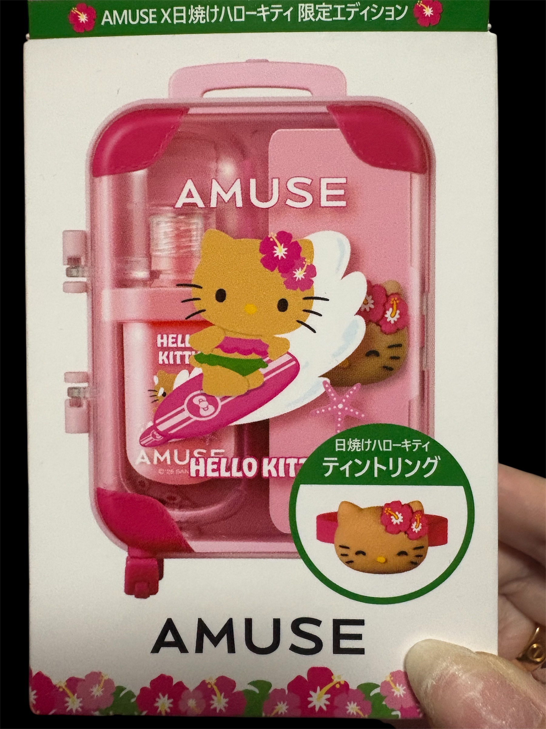 日焼けしたキティちゃんがとても可愛いAMUSEの限定セット『AMUSEジェルフィットティントキャリーセット 06 ソウルガール』♥️日焼けしたキティちゃんのキャリーケースとティントリング付き♥️AMUSEの人気ジェルフィットティントのイエベと...