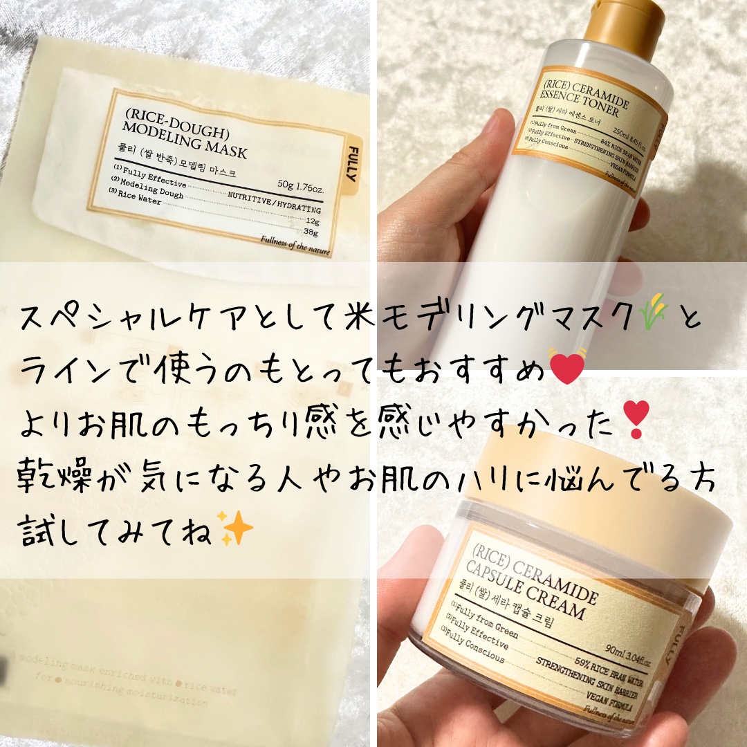 「FULLY」さまから商品提供していただきました♡\\もっちりつづく🌾//*FULLY*米セラミドエッセンストナー米セラミドカプセルクリームお米を感じさせるようなシンプルで柔らかな色合いのパケ米セラミドエッセンストナーはとろんとしたテクスチャ...