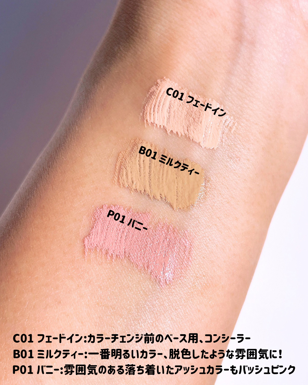 (mude様よりご提供いただきました❤︎)mudeミュードインスパイアスキニーブロウカラB01ミルクティーC01フェードイン🆕P01バニー🆕各Qoo10メガ割価格¥1,040(税込)クールで神秘的に変わる🌟ムードチェンジブロウカラ!全10色🎨...
