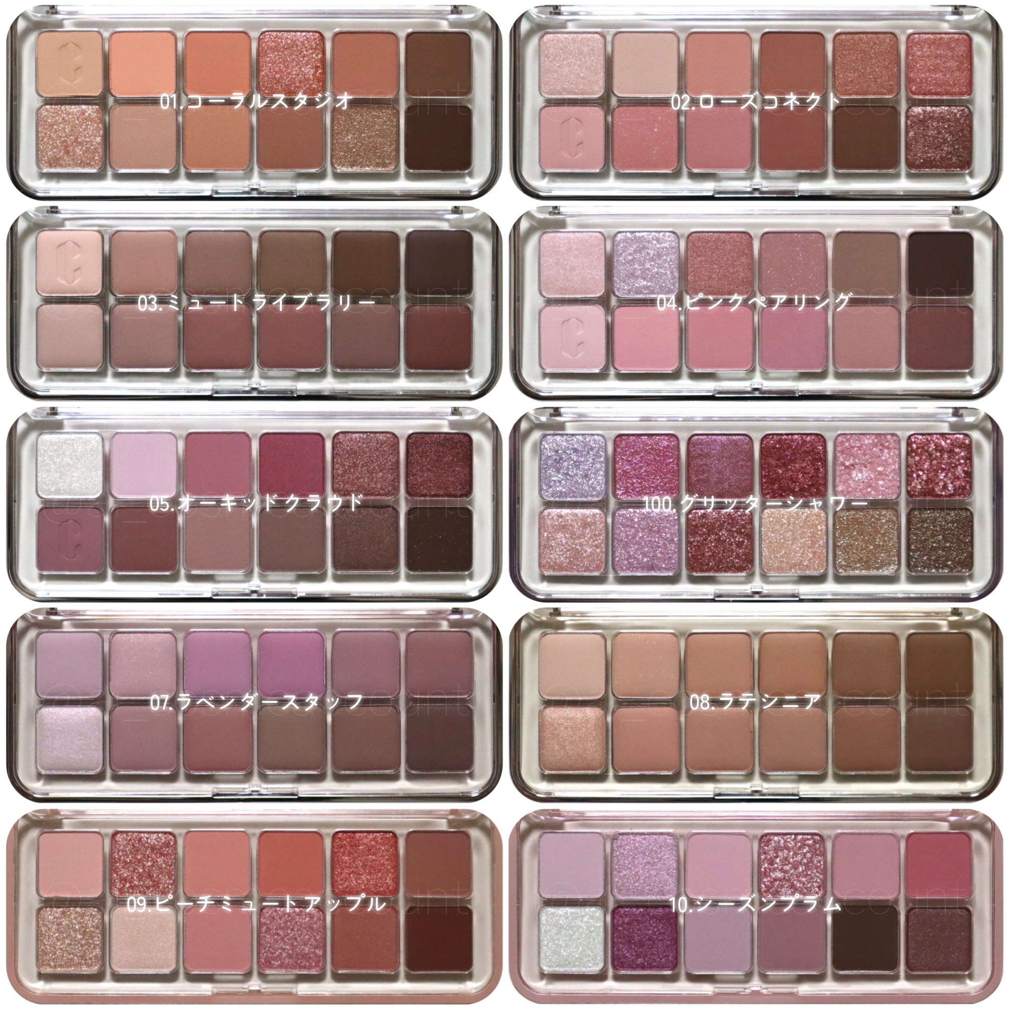 [CLIOPROEYEPALETTE全色スウォッチ]CLIOプロアイパレットの1号〜10号と、StreyKidsコラボ限定色の100号・101号の全色スウォッチです。フラッシュ撮影の全色スウォッチはコチラ↓https://lipscosme....