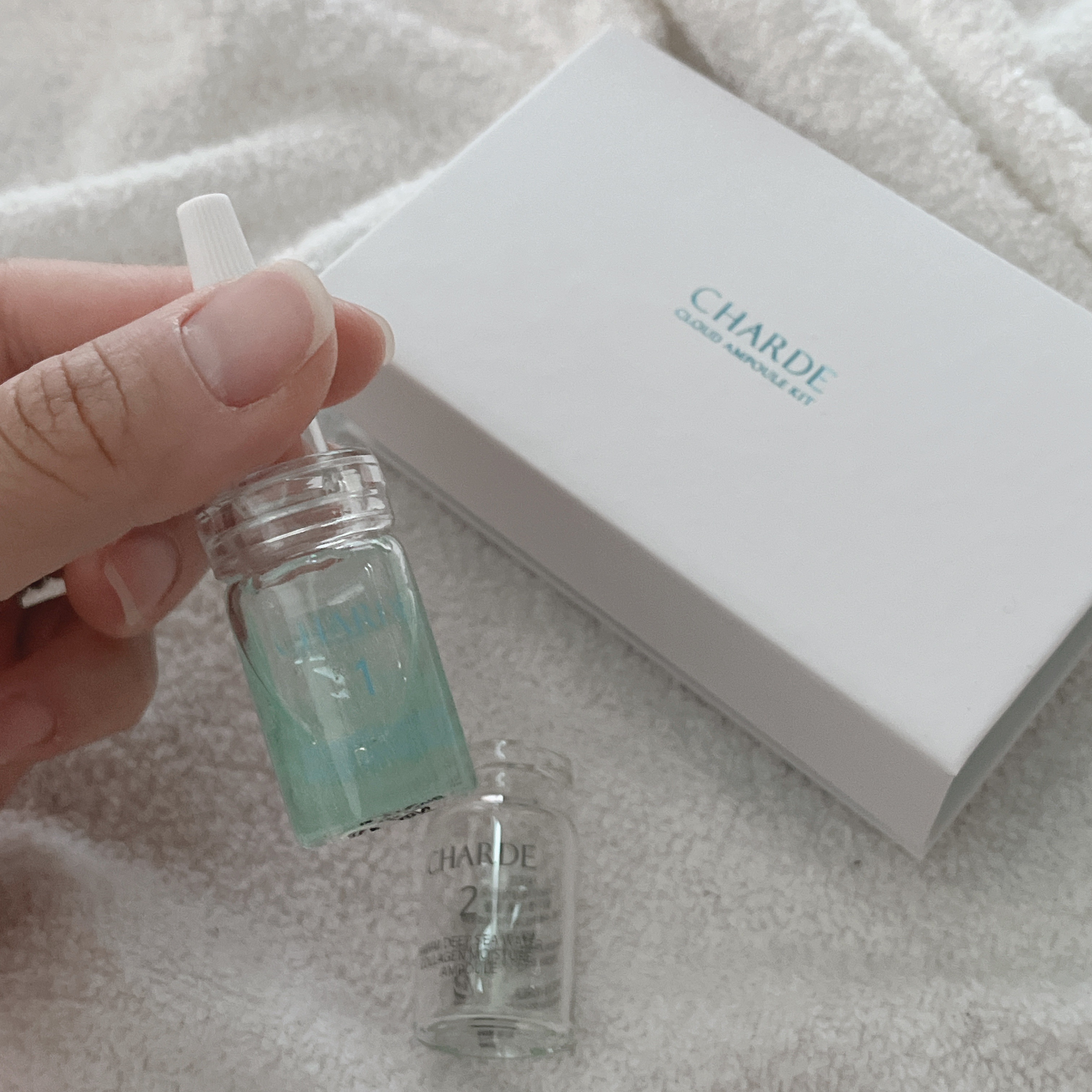 CHARDEクラウドアンプルフリーズドライされたヒアルロン酸+コラーゲン剤と水分エッセンスを混ぜて使うよ✨スーッと溶けていくのが見ていて楽しい♪よく振ってから使ってね!とろみがあるテクスチャーで肌馴染みがいい印象◎1剤は防腐剤フリーなので開封...