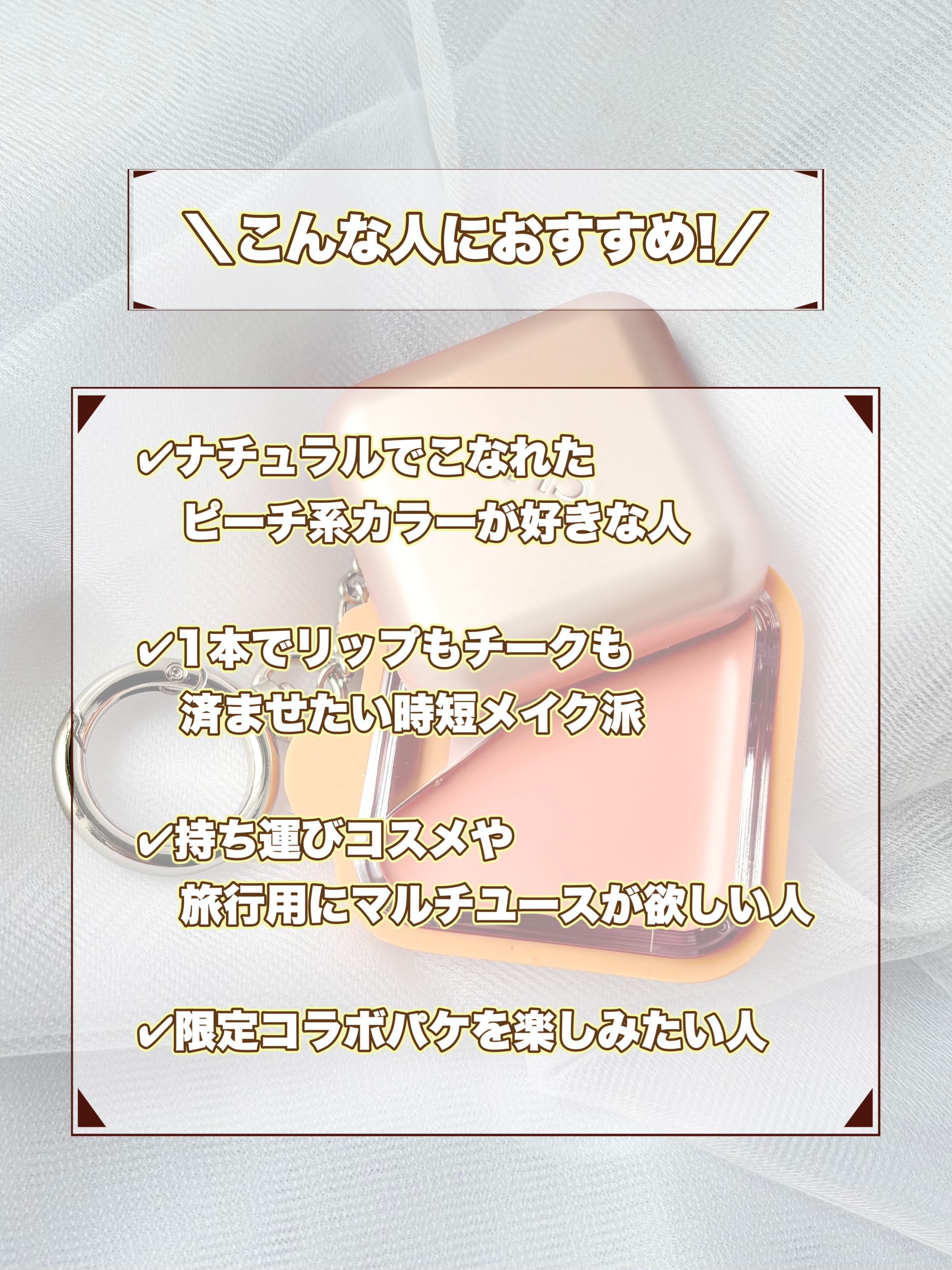 | クリームチークランキング第46位 | ベタつかず使えてリップとチークで血色感や統一感を演出することができるよ🫶🏻 | 詳細を見る | |
