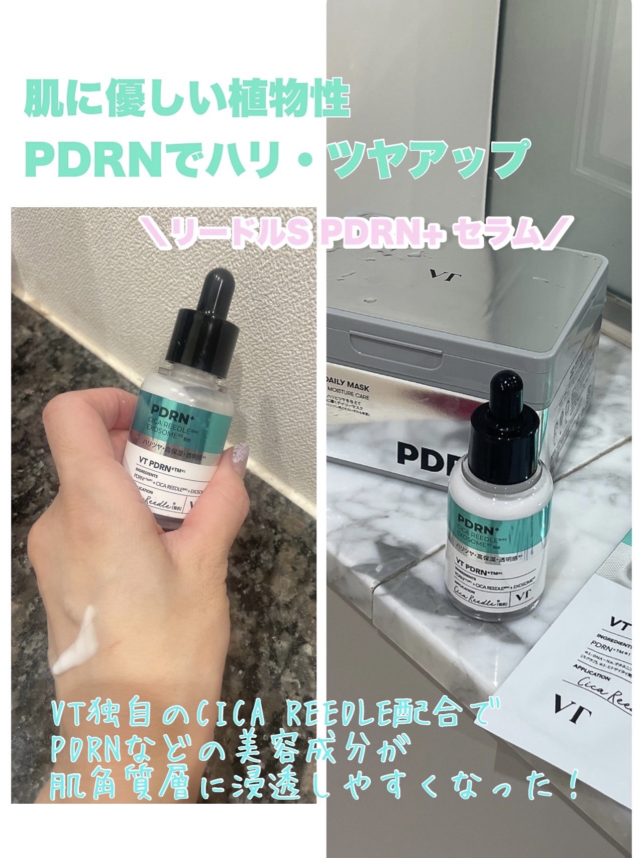 VTリードルSPDRN+セラム使ってみました。話題の植物性PDRN×リードルショット入りセラムでPDRNの浸透力かなりアップといわれているのがコレ。VTのPDRNは高麗人参由来の植物性で動物性に比べて低分子なためより浸透しやすいVT独自のCI...
