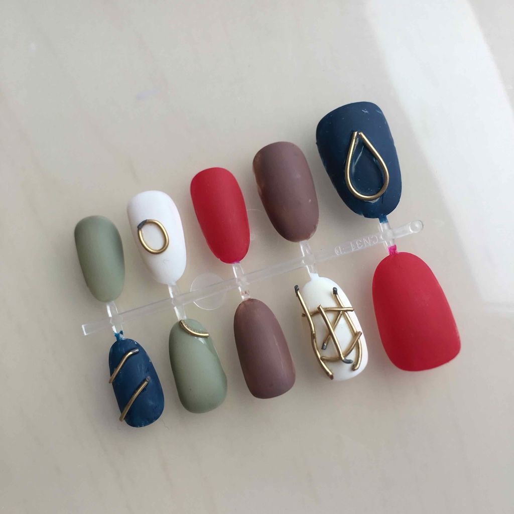 カラフルだけどおしゃれな感じをイメージして作ってみました!使ったネイルは、写真の左から順に①カンコレネイルカラー(ダイソー)②マットトップコート(ネイルホリック)③カラフルネイルズ(キャンメイク)④?(ダイソー)※2本⑤?(ケイト)です!!ネ...