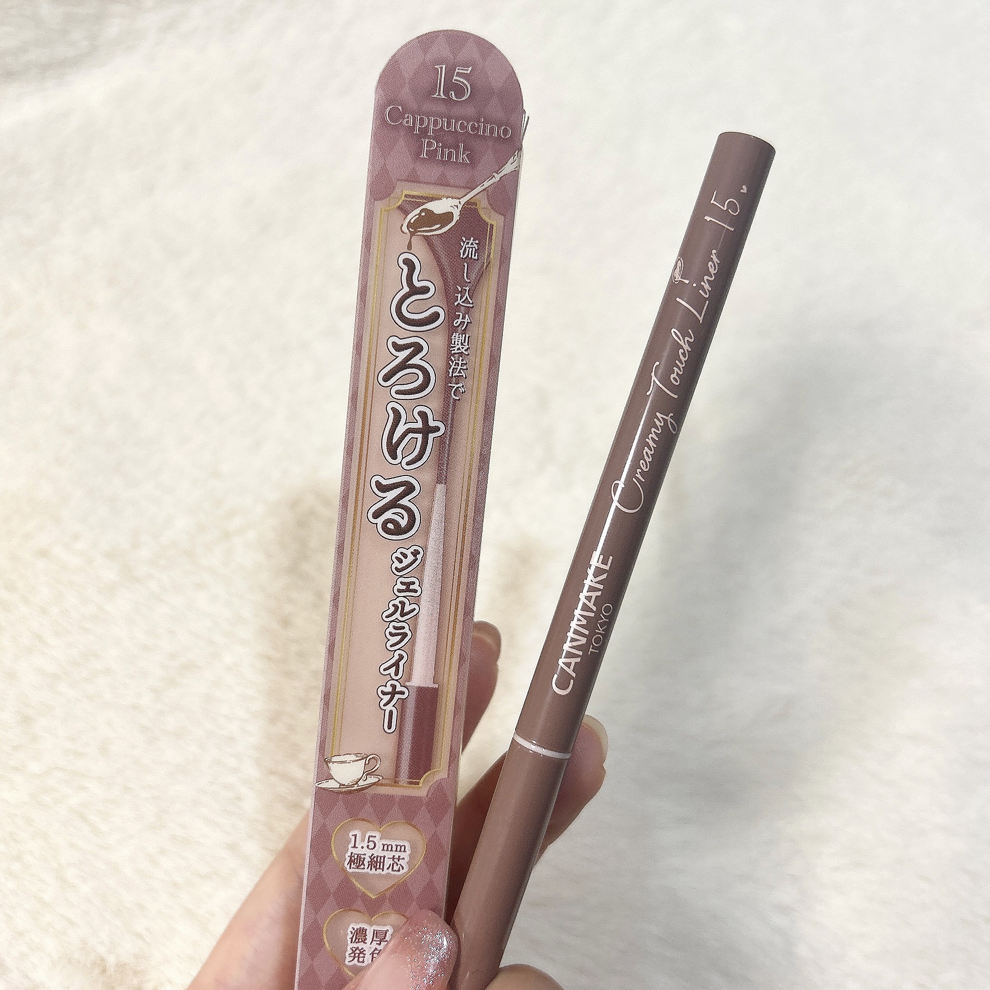CANMAKEのクリーミータッチライナーの新色が過去1可愛すぎた…!♡ 15 カプチーノピンクってカラーなんだけど、優しげなピンクブラウンって感じで影みたいな色でさりげなく目幅を拡張してくれるの!🥺 アイラインはもちろん、下まぶたラインや涙袋の影に使うのが個人的に好き!🥰🩷 ぜひチェックしてみてね🌷