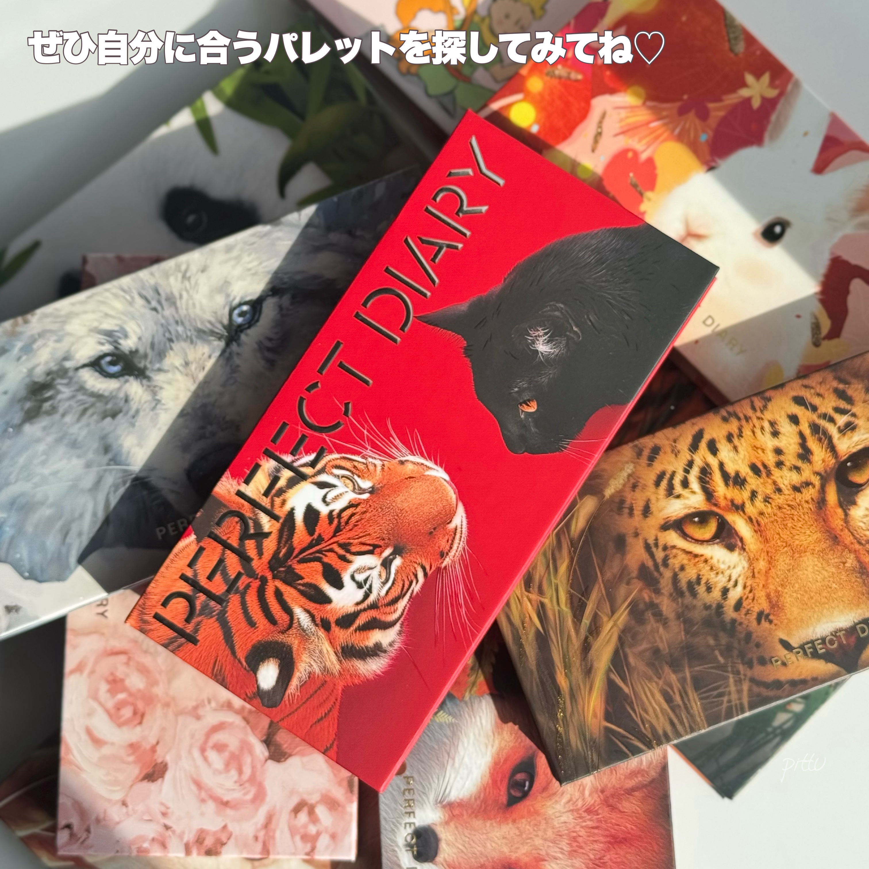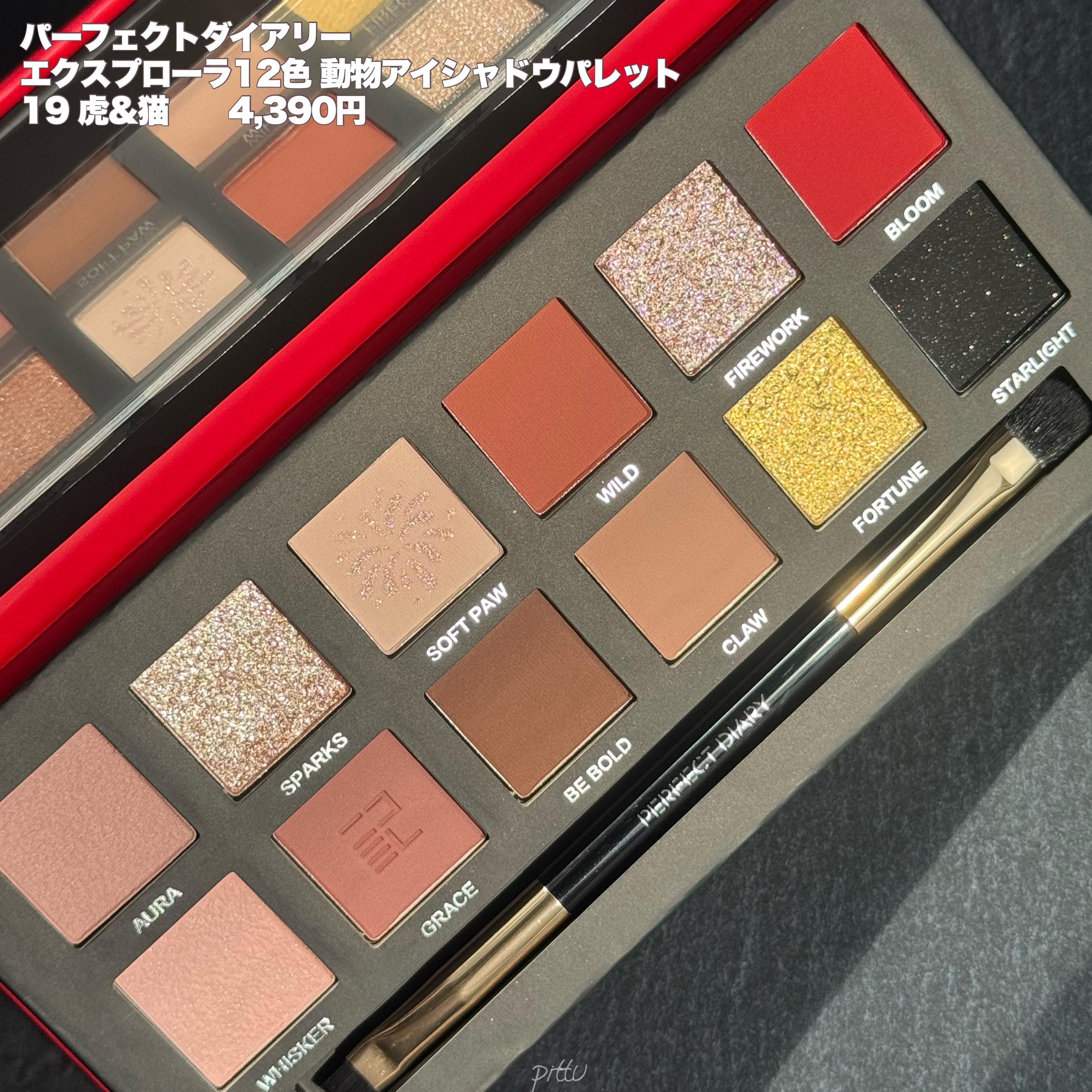 【PERFECTDIARY】エクスプローラ12色動物アイシャドウパレット 虎&猫パッケージから目を惹くデザイン✨猫ルックなしなやかさと、虎ルックなクールさを合わせ持ったソフトと力強さを再現🐅🐈⬛マットやパール、グリッターなどが入った12色の...