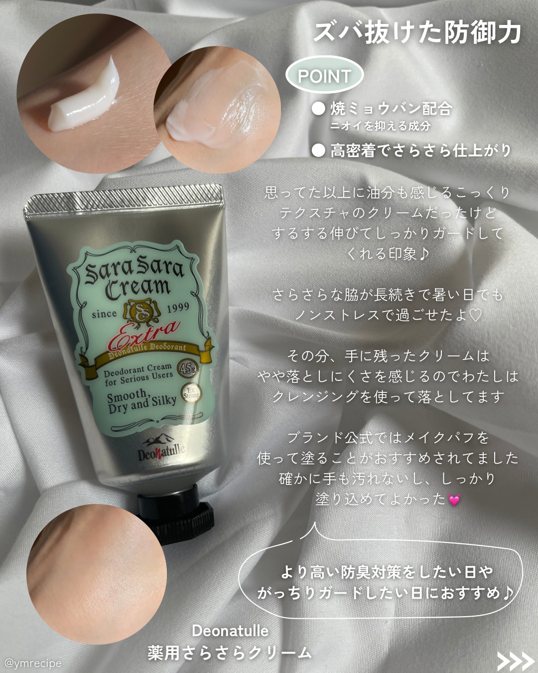 | デオドラント・制汗剤ランキング第5位 | みずみずしい柔らかめのクリームタイプのテクスチャで少量でなめらかにのびてサラッサラに✨✨ | 詳細を見る | |