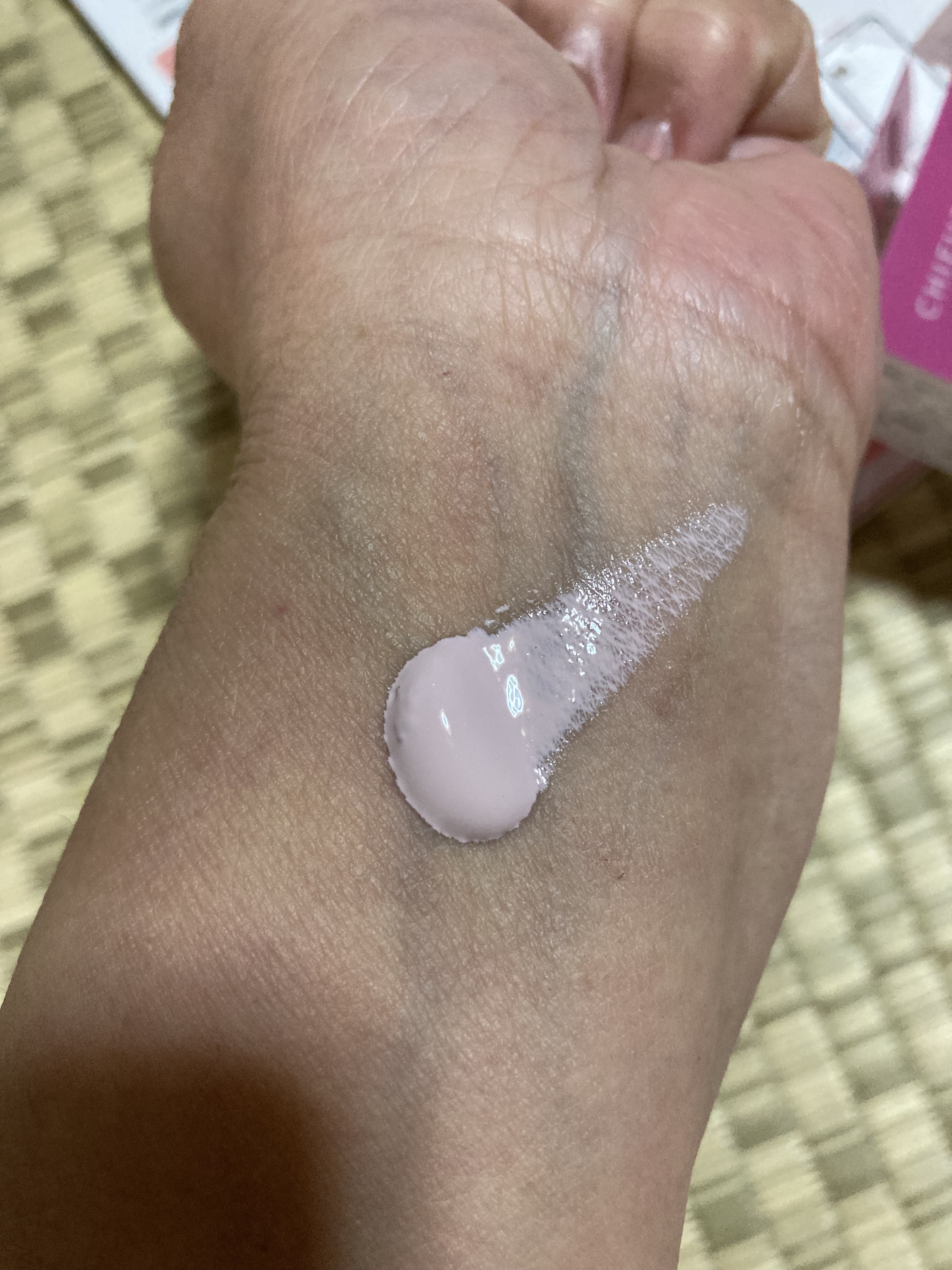 - 着色成分:酸化チタン 適量, マイカ 適量, グンジョウ 適量, 酸化鉄 適量, 赤202 適量, 青1 適量, 硫酸Ba 適量 油性エモリエント成分:トリエチルヘキサノイン 7.81%, パルミチン酸エチルヘキシル 1.71%, トリイソステアリン酸ポリグリセリル-2 1.52%, セタノール 0.50%, イソヘキサデカン 0.45%, リンゴ酸ジイソステアリル 0.15% サンスクリーン成分:メトキシケイヒ酸エチルヘキシル 7.00%, ジエチルアミノヒドロキシベンゾイル安息香酸ヘキシル 2.00% 保湿成分:DPG 5.00%, ペンチレングリコール 1.00%, 1,2-ヘキサンジオール 0.50%, トレハロース 0.03%, ヒアルロン酸Na 0.01%, ポリクオタニウム-51 0.01% 乳化剤:ポリソルベート60 2.50%, ステアリン酸ソルビタン 1.50%, ポリヒドロキシステアリン酸 0.59%, トリラウレス-4リン酸 0.50%, ポリソルベート80 0.15%, オレイン酸ソルビタン 0.05% 増粘剤:(アクリル酸Na/アクリロイルジメチルタウリンNa)コポリマー 0.75%, キサンタンガム 0.10% 防腐剤:フェノキシエタノール 適量, メチルパラベン 適量, プロピルパラベン 適量 表面処理剤:水酸化Al 適量, ハイドロゲンジメチコン 適量, メチコン 適量 キレート剤:EDTA-2Na 0.05% 製品の酸化防止剤:トコフェロール 適量 成分の酸化防止剤:BHT 適量 基剤:水 全量を100%とする